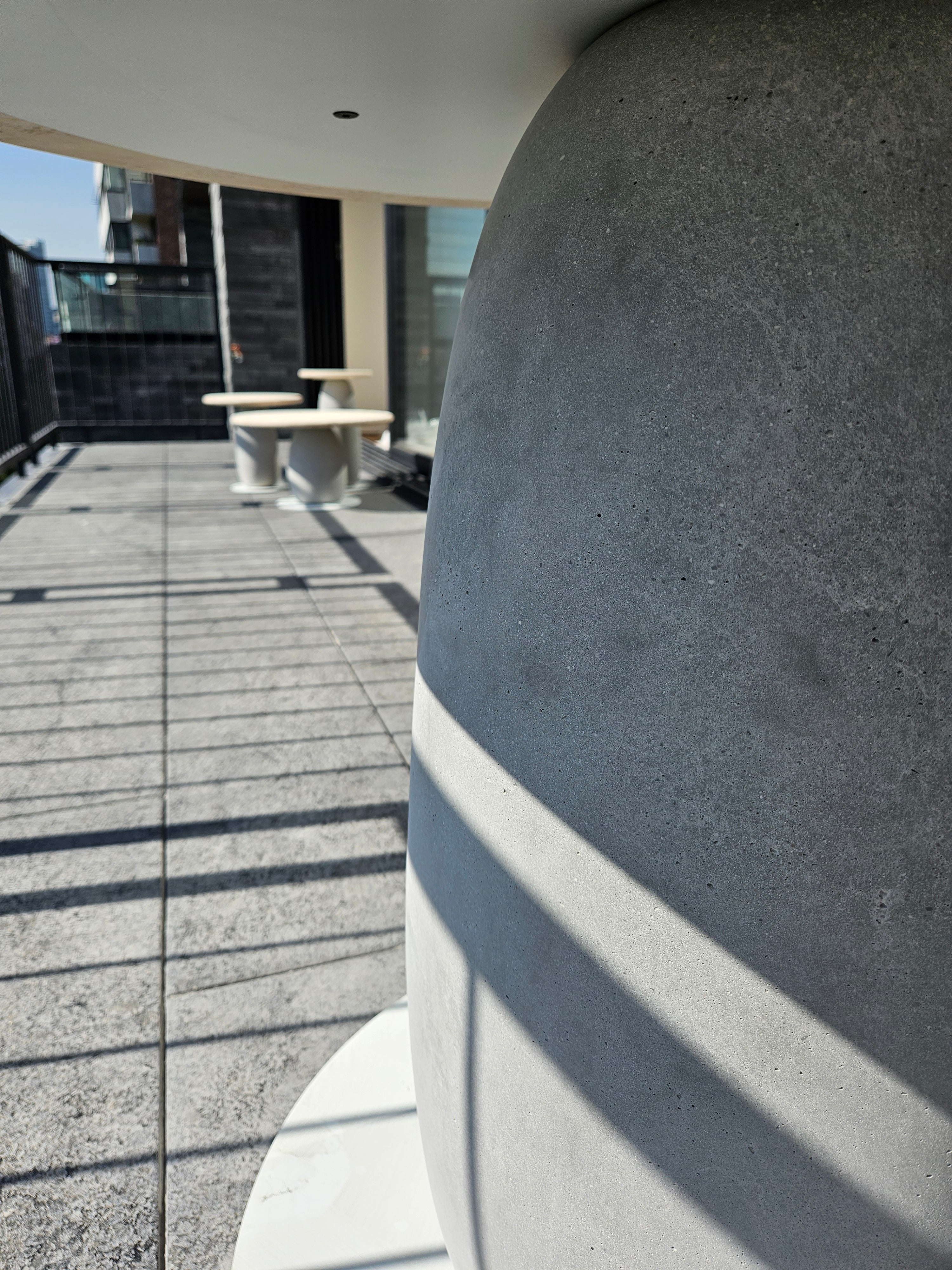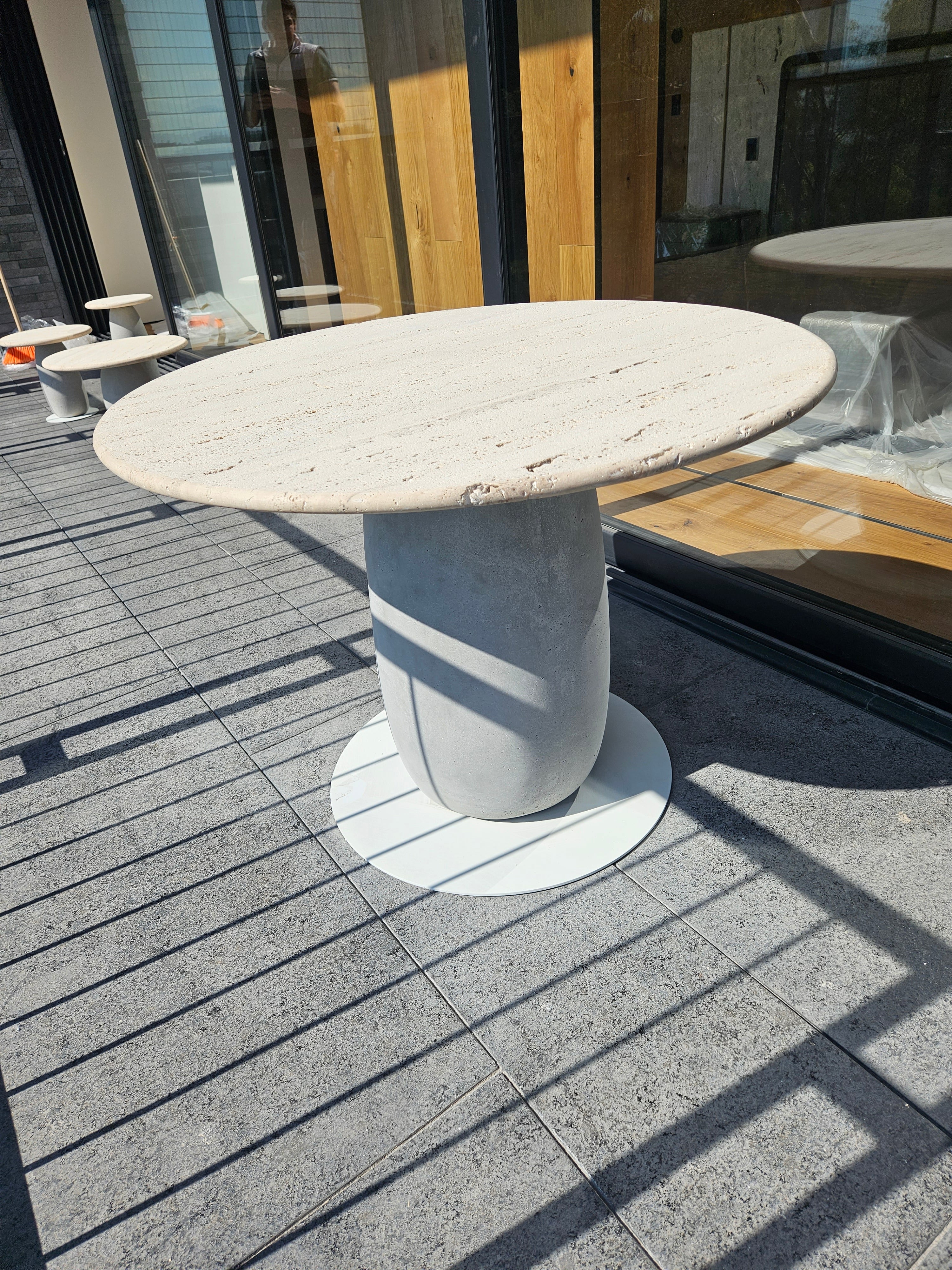 La mesa de comedor exterior Bau Casa Ovo presenta una forma elegante y orgánica que evoca la silueta suave de una piedra pulida. Su base escultórica puede fabricarse en concreto, terrazzo o mármol sólido, realzada con una estructura interna de acero. La cubierta, elaborada en mármol 100% natural, ofrece una superficie refinada y atemporal que realza cualquier espacio exterior. Cada pieza es trabajada artesanalmente, garantizando una presencia única, sofisticada y duradera.