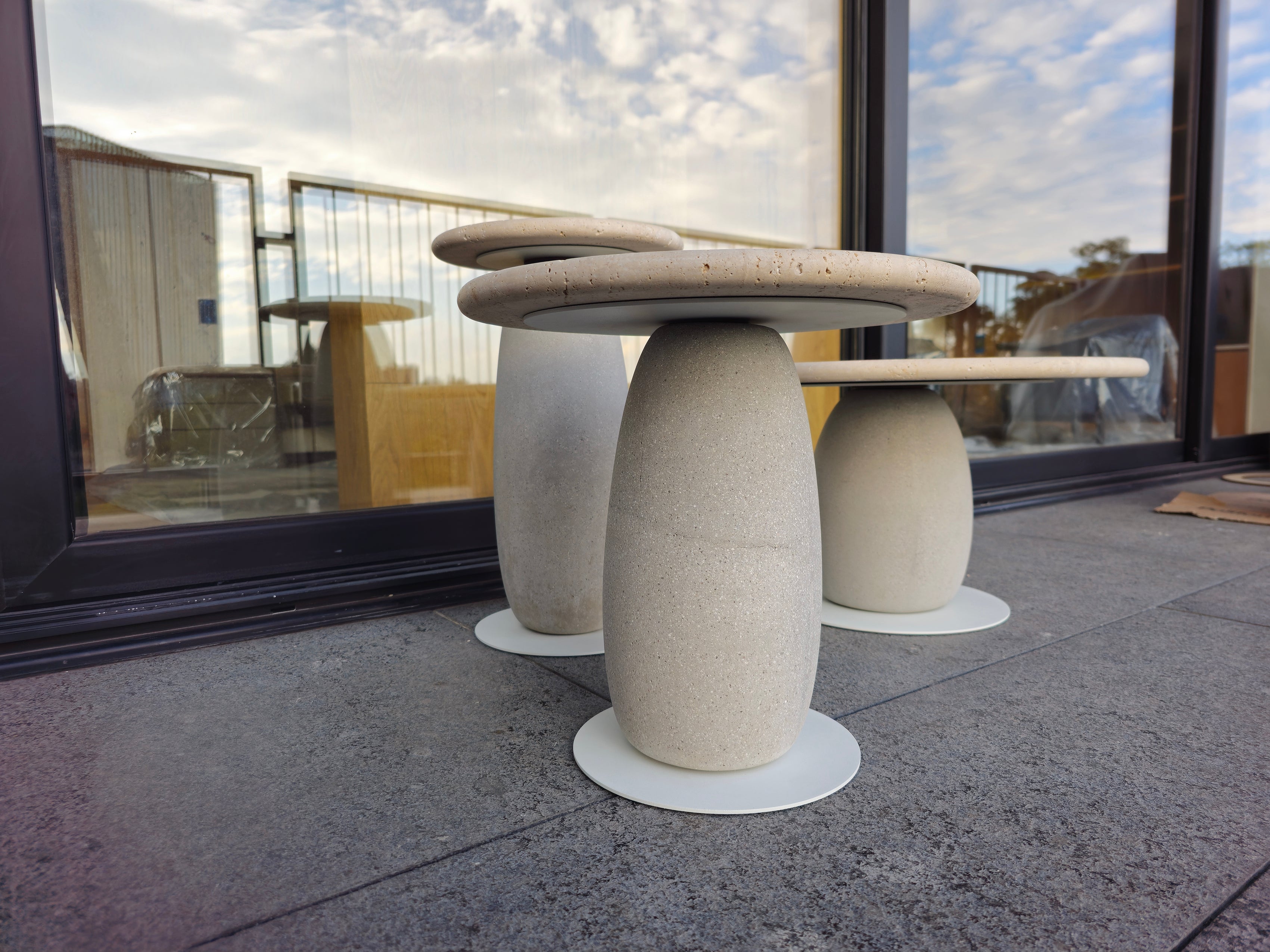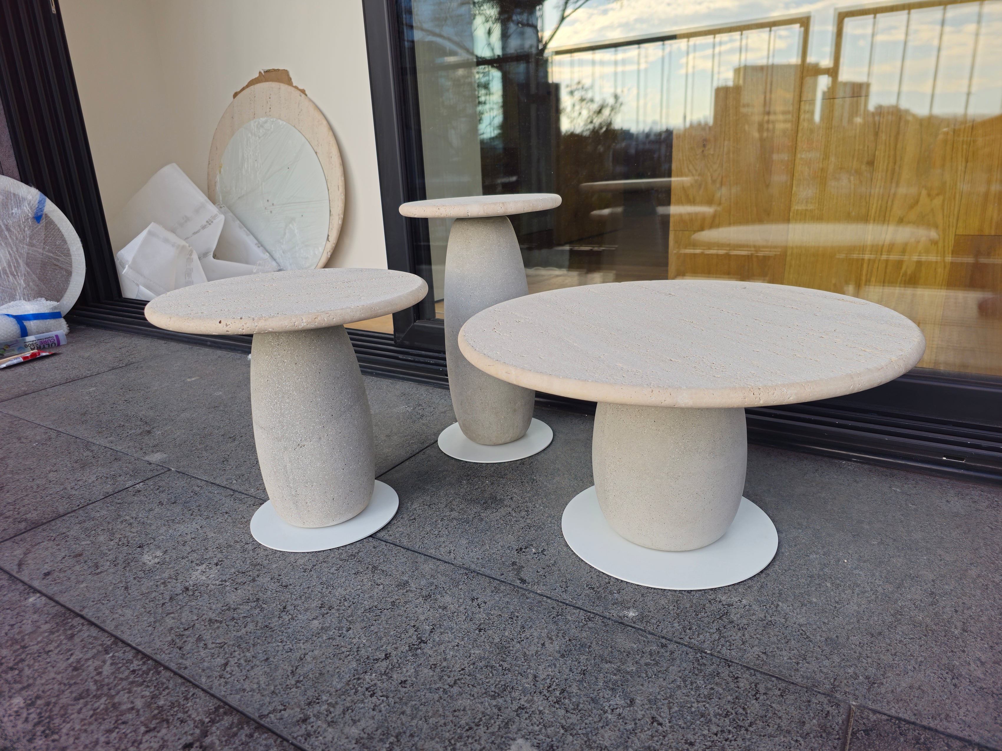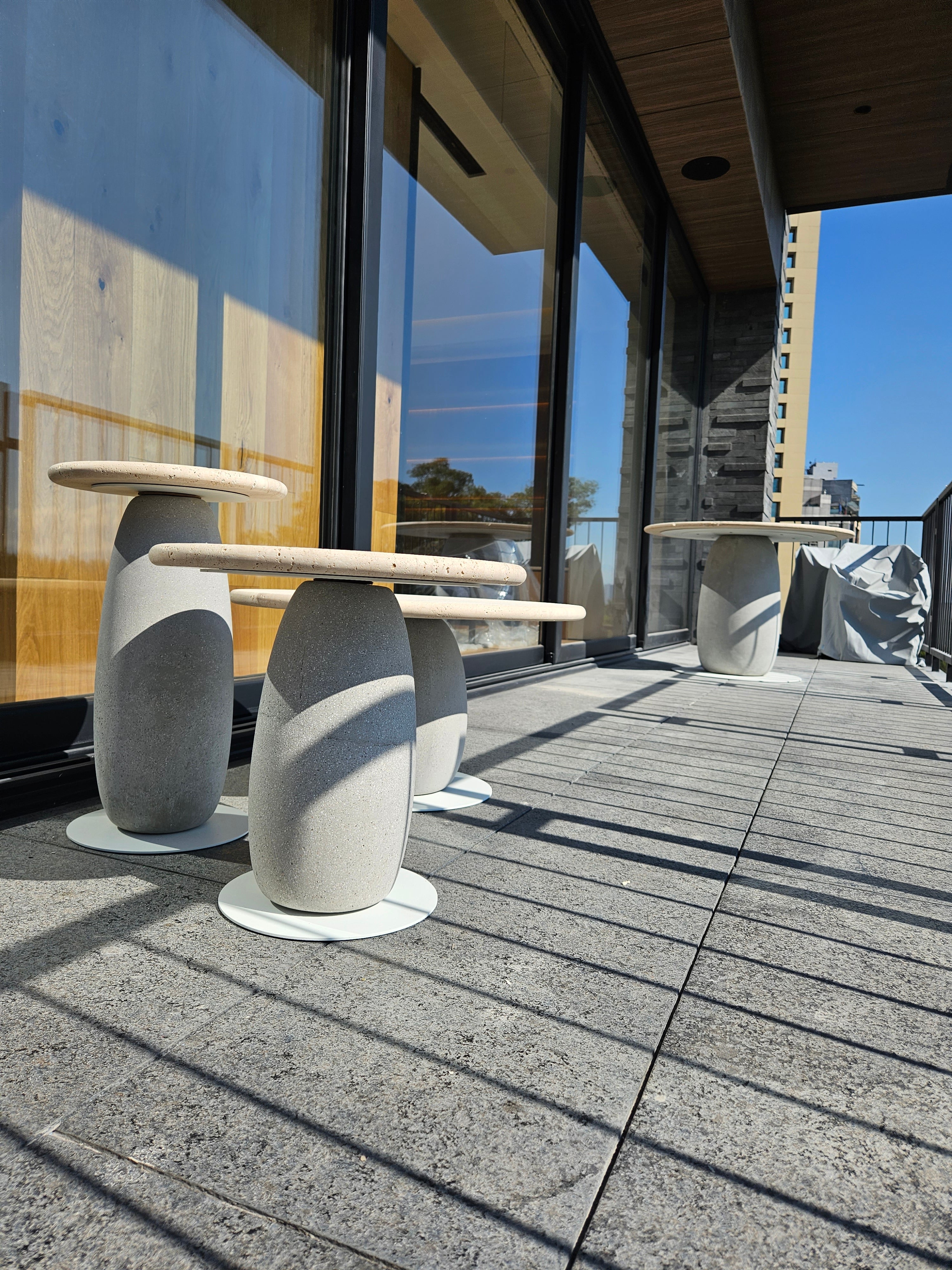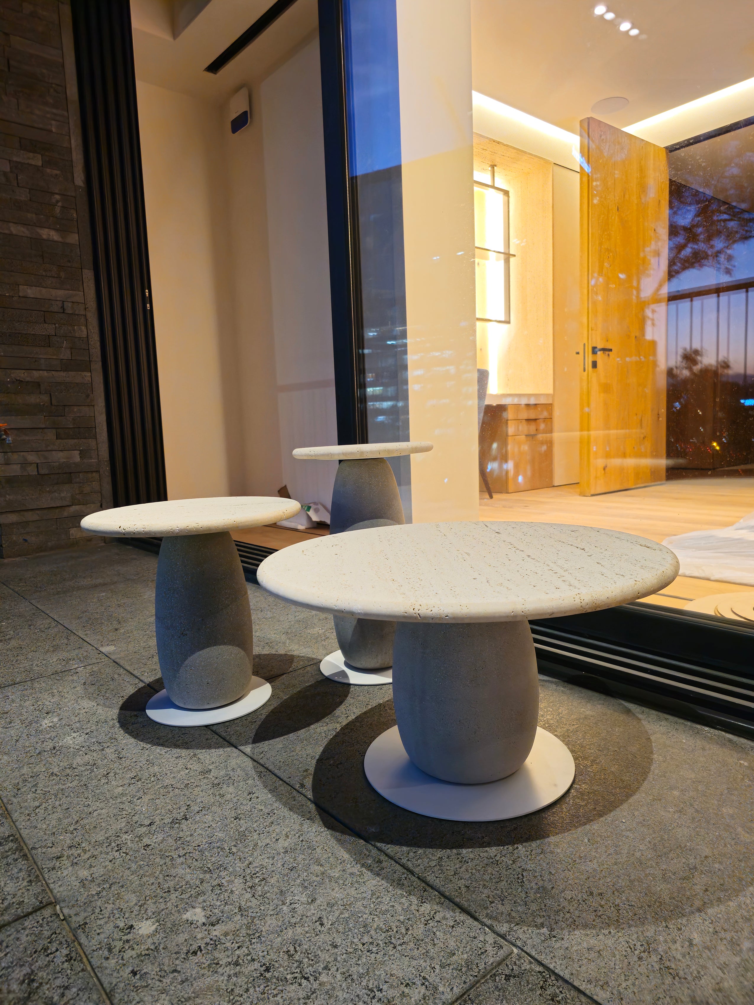 El set de Coffee Tables Organic continúa la esencia elegante y orgánica de la colección, con líneas suaves que evocan formas naturales, como piedras erosionadas por el viento. Cada pieza se distingue por su base escultórica que puede ser fabricada en mármol sólido, concreto o terrazzo, siempre con alma estructural de acero para asegurar su resistencia. La cubierta, elaborada en mármol 100% natural, añade un acento de sofisticación y frescura ideal para exteriores o interiores contemporáneos. Perfectas para ser usadas en conjunto o individualmente, estas mesitas enriquecen cualquier espacio con su carácter único y atemporal.