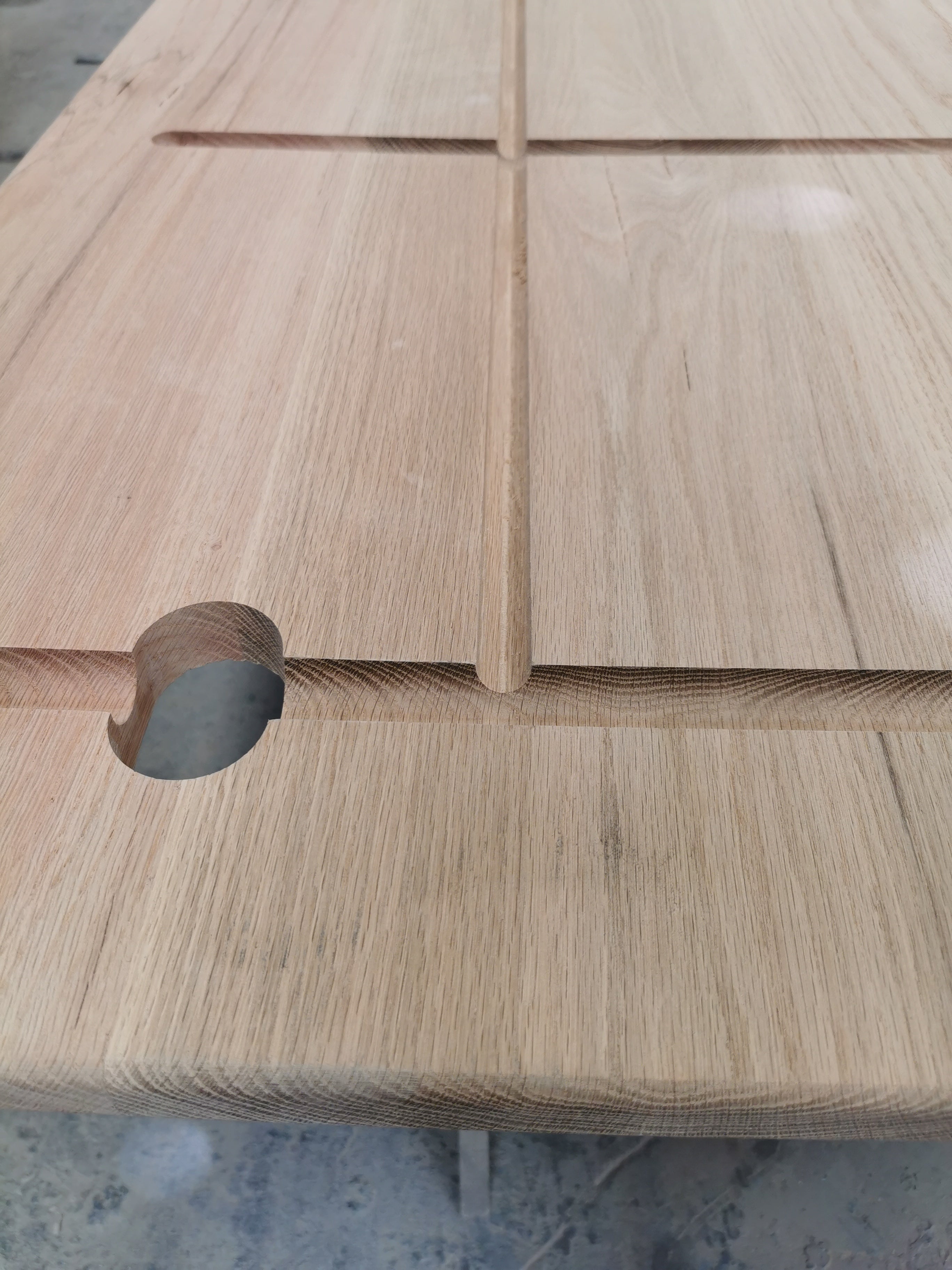 Base de Madera: Madera maciza 100% de tala sustentable, en encino rojo, encino blanco, nogal, tzalam y rosa morada.