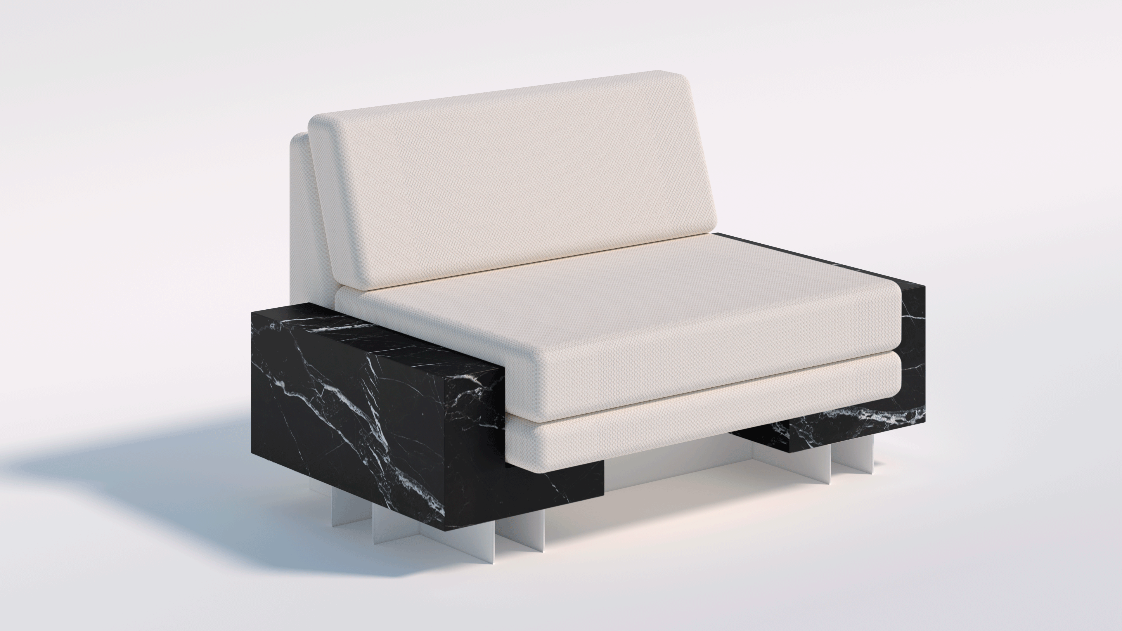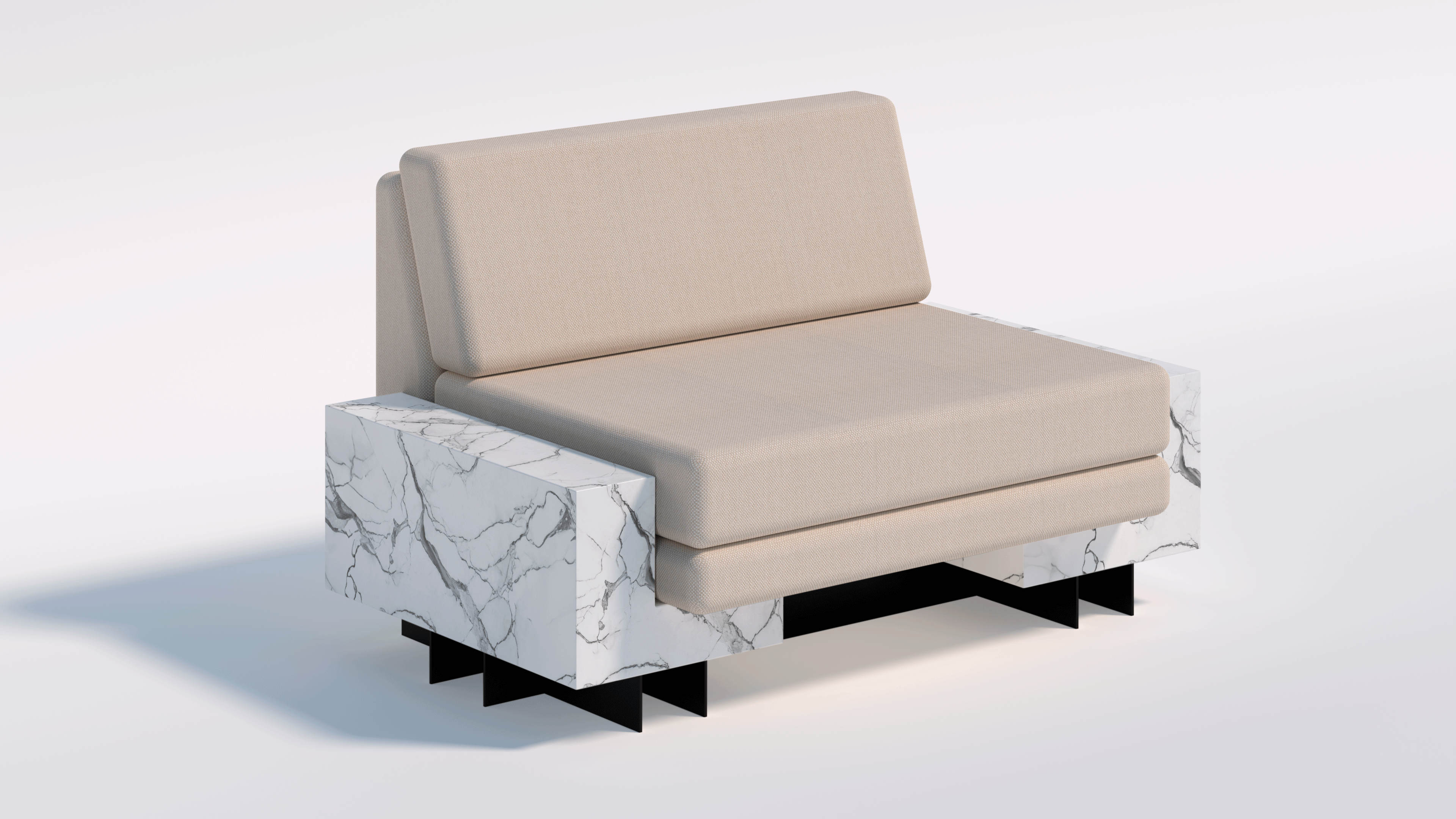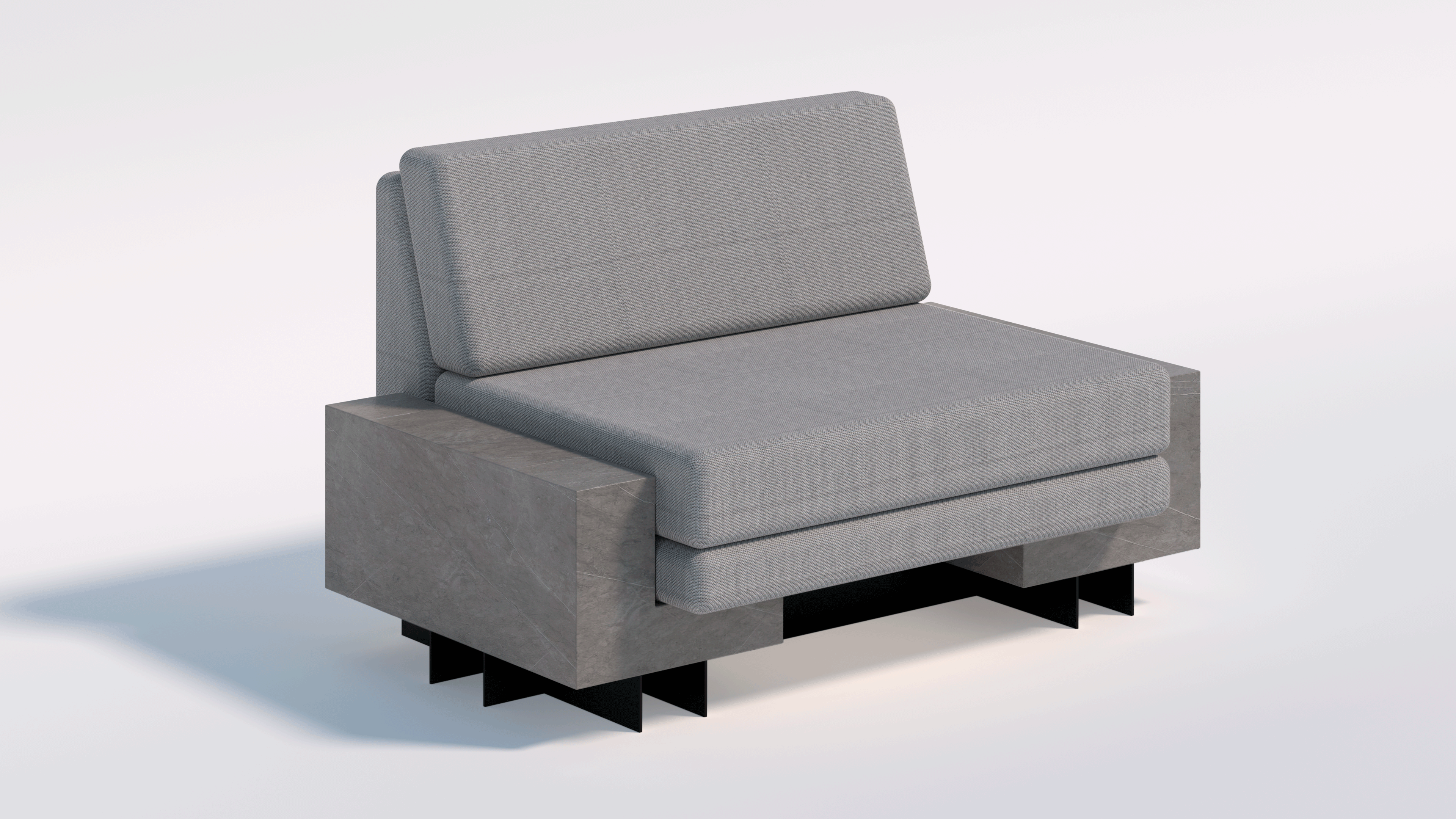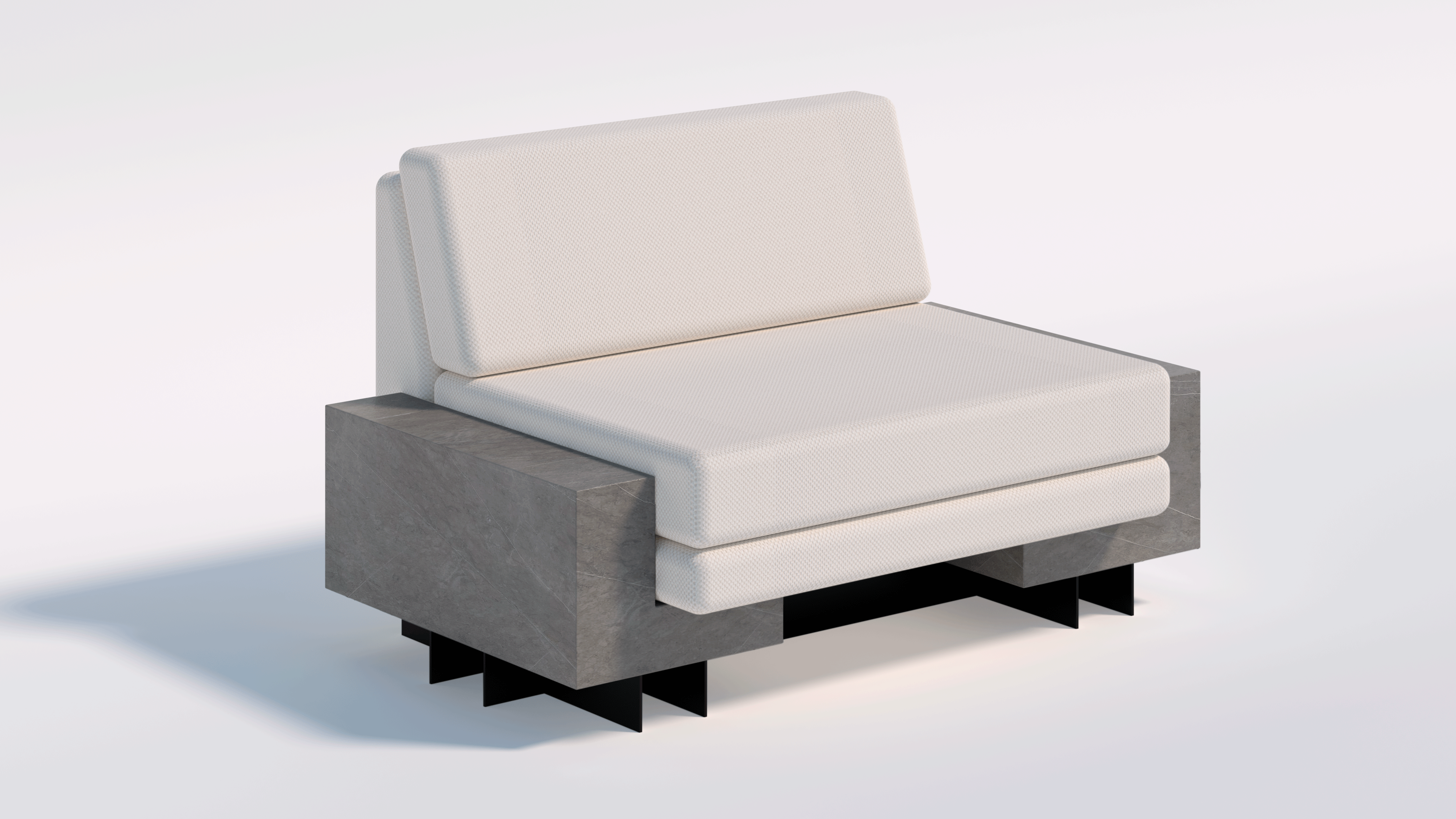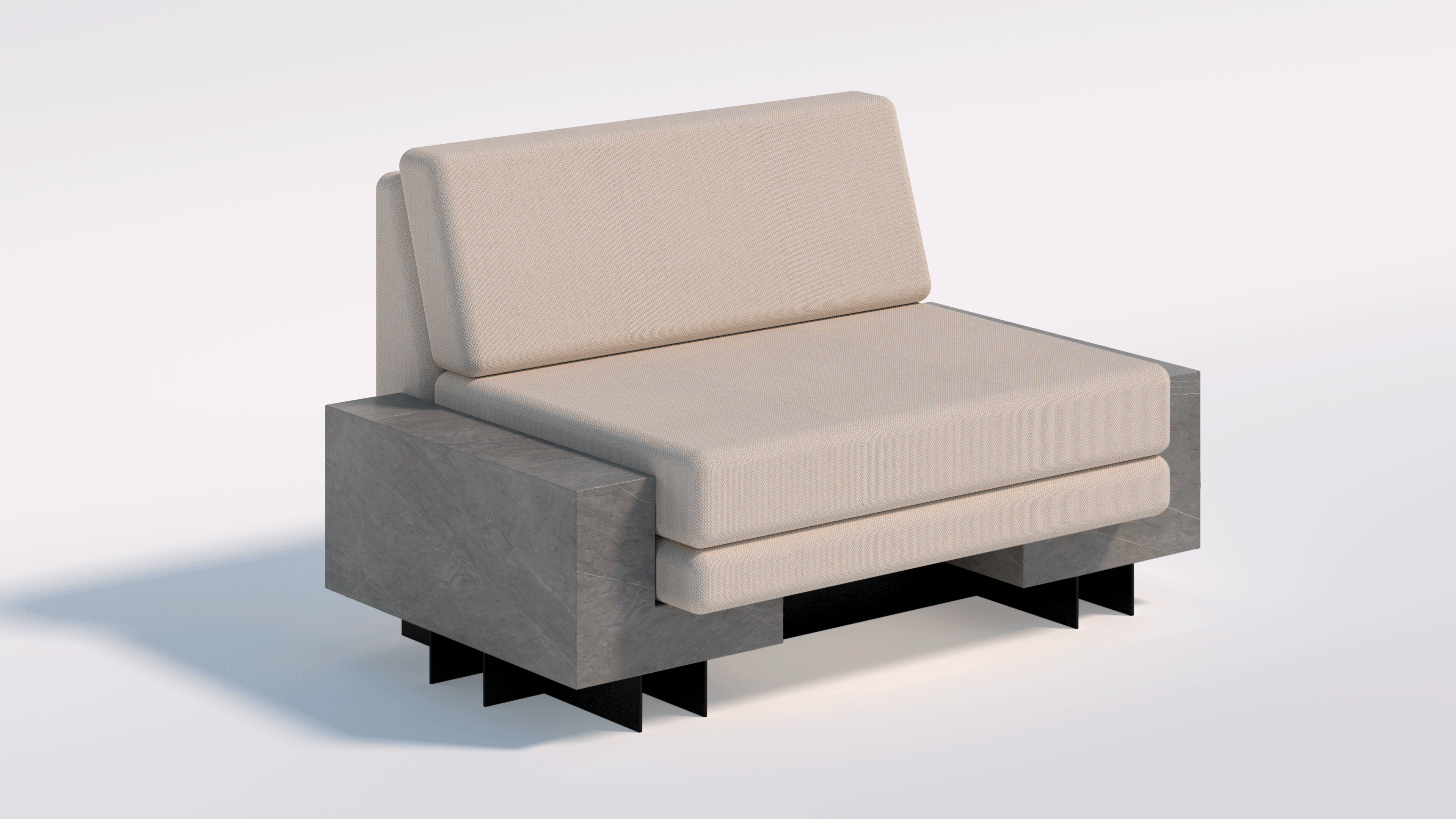 Sus laterales, esculpidos en mármol natural y labrados a mano por artesanos expertos, aportan una presencia escultórica que evoca solidez, elegancia y atemporalidad. Cada veta revela la unicidad del material, haciendo de cada pieza una obra irrepetible.