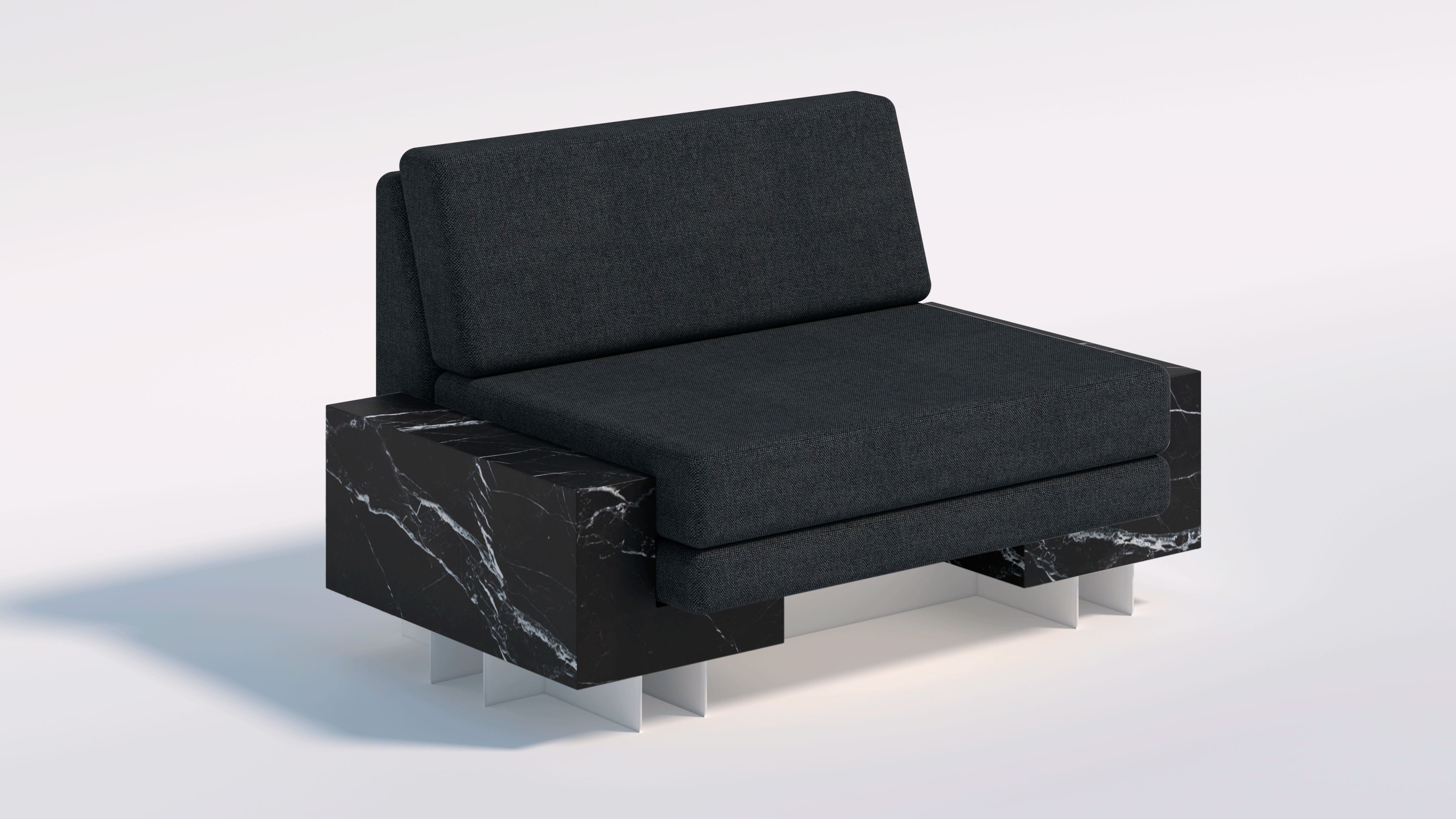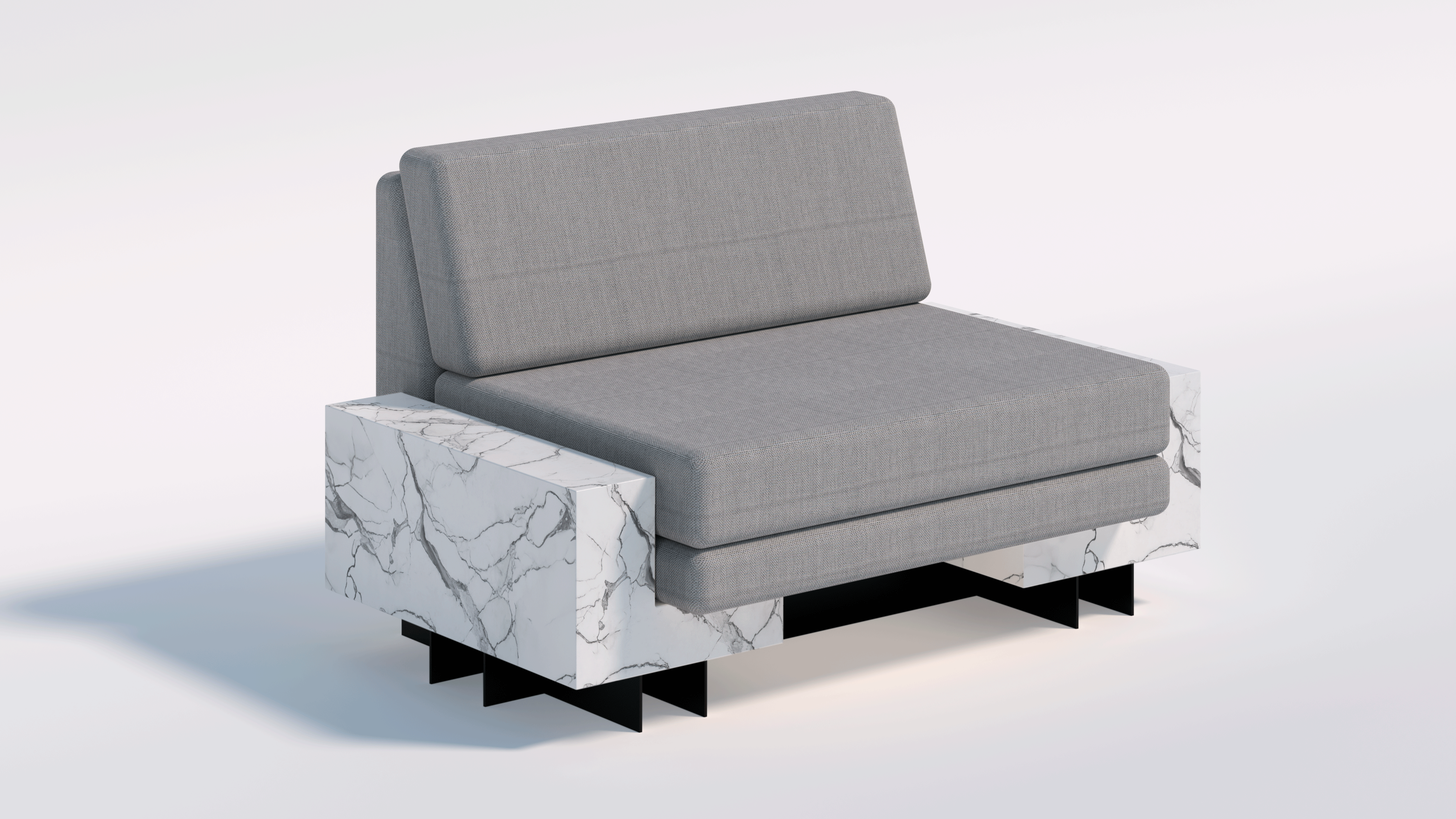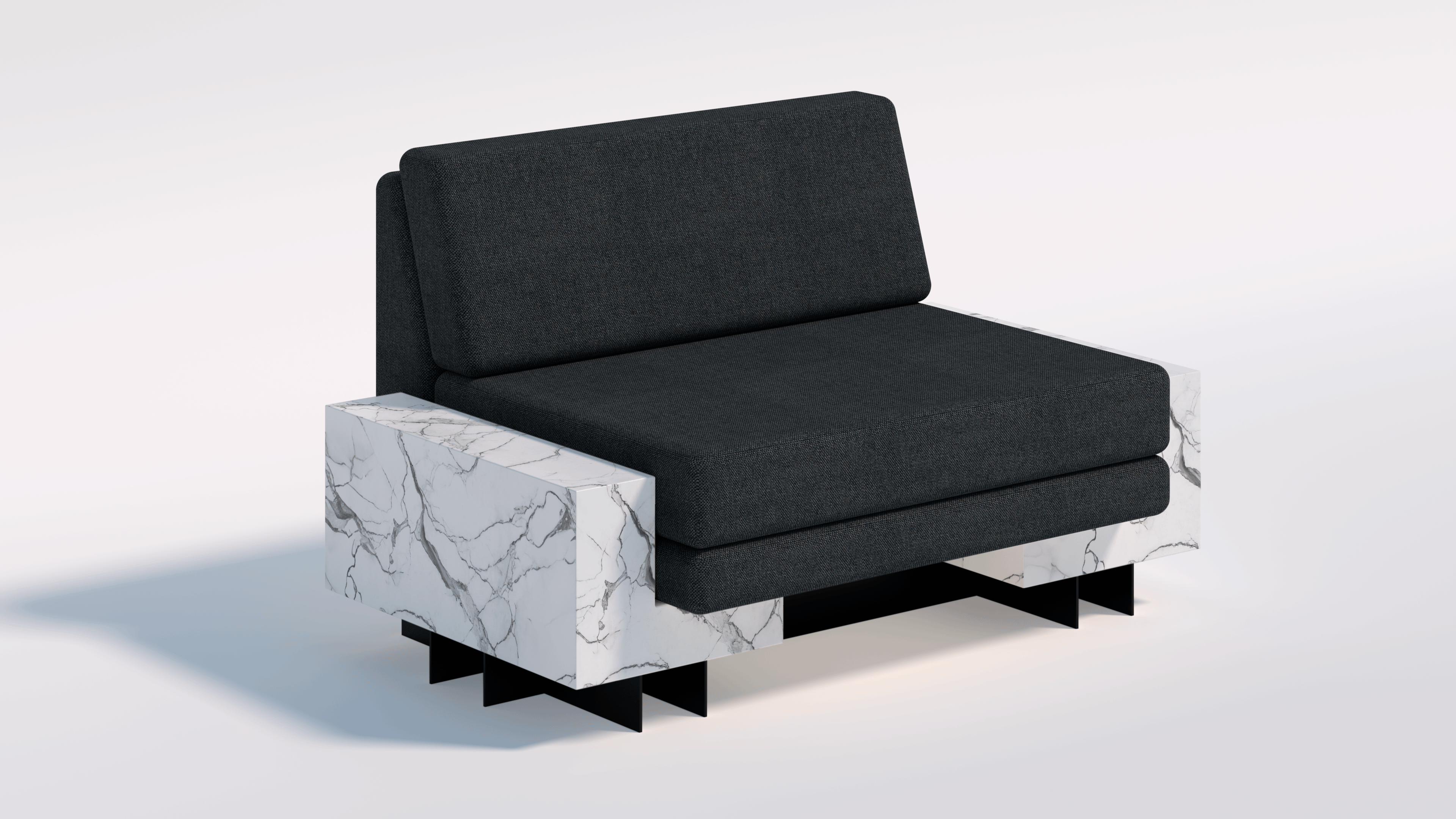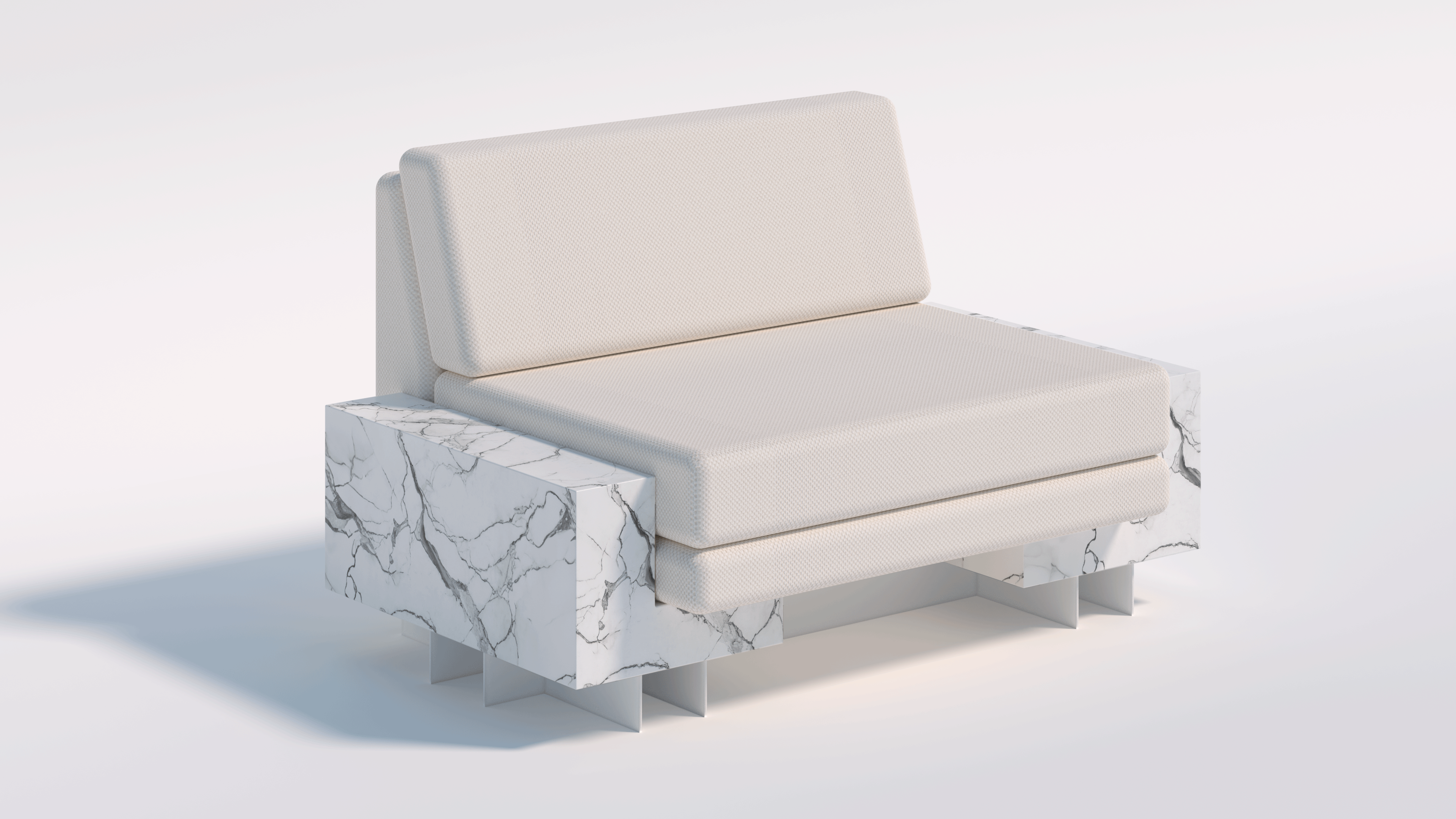 Sus laterales, esculpidos en mármol natural y labrados a mano por artesanos expertos, aportan una presencia escultórica que evoca solidez, elegancia y atemporalidad. Cada veta revela la unicidad del material, haciendo de cada pieza una obra irrepetible.