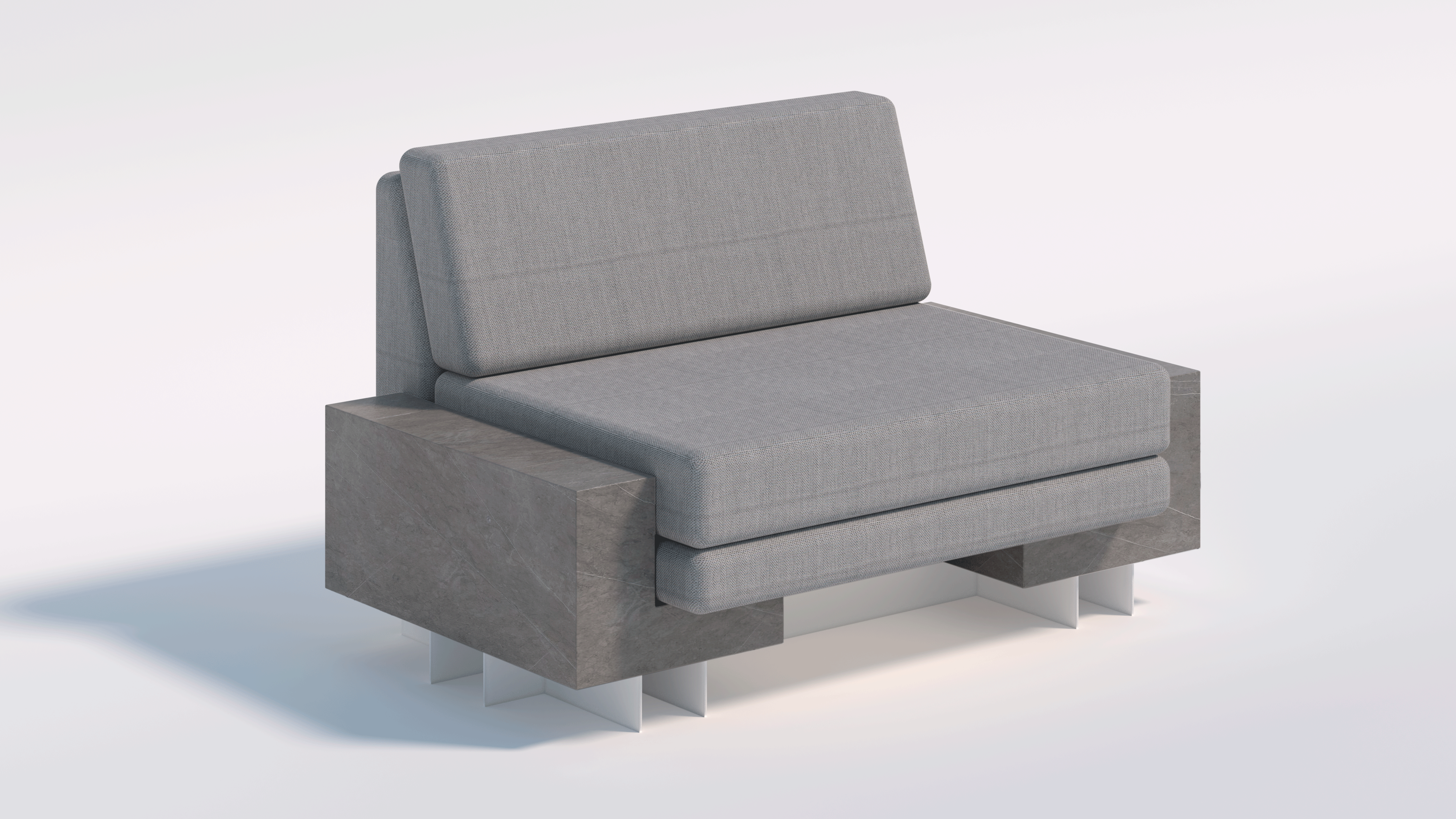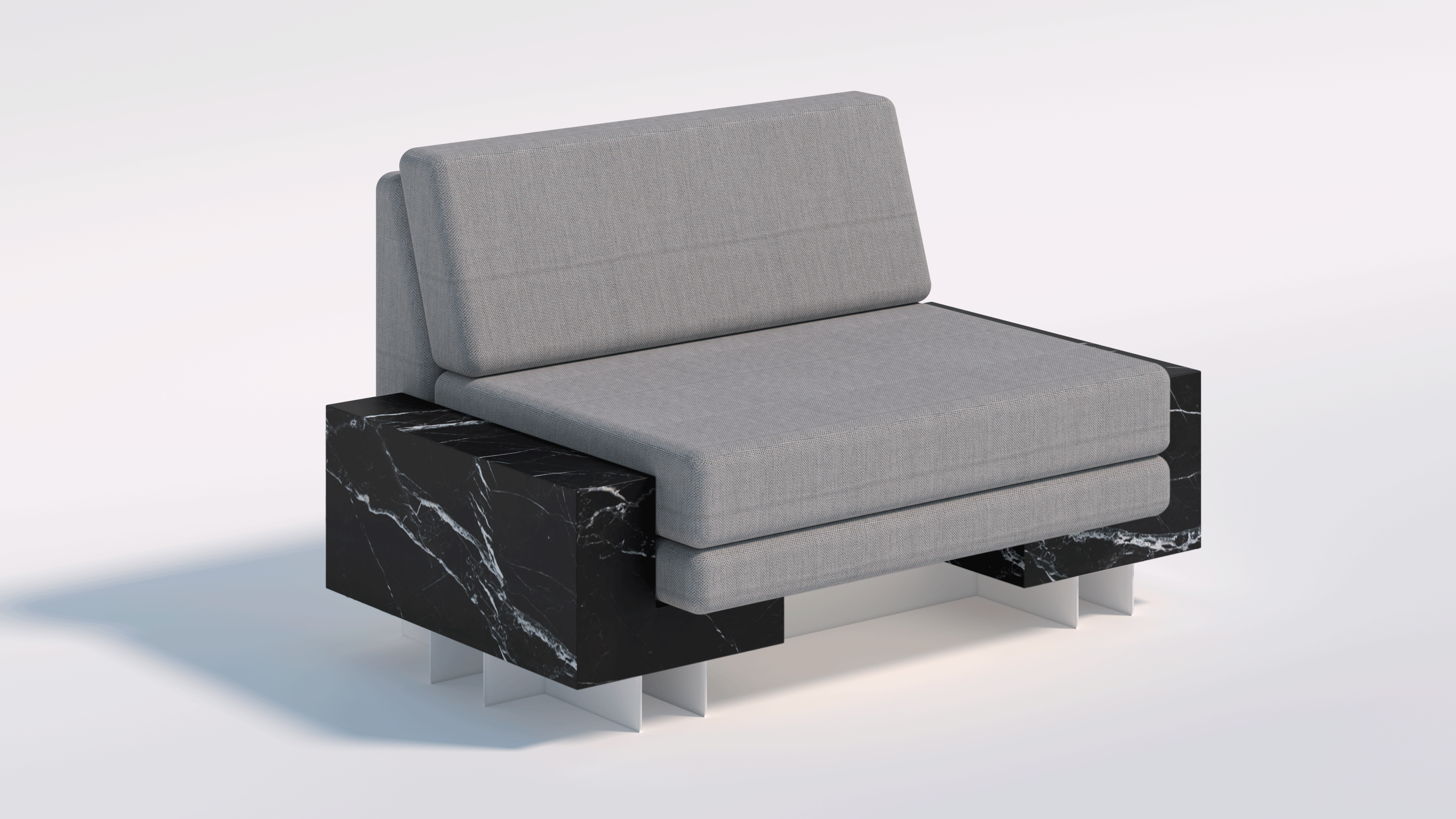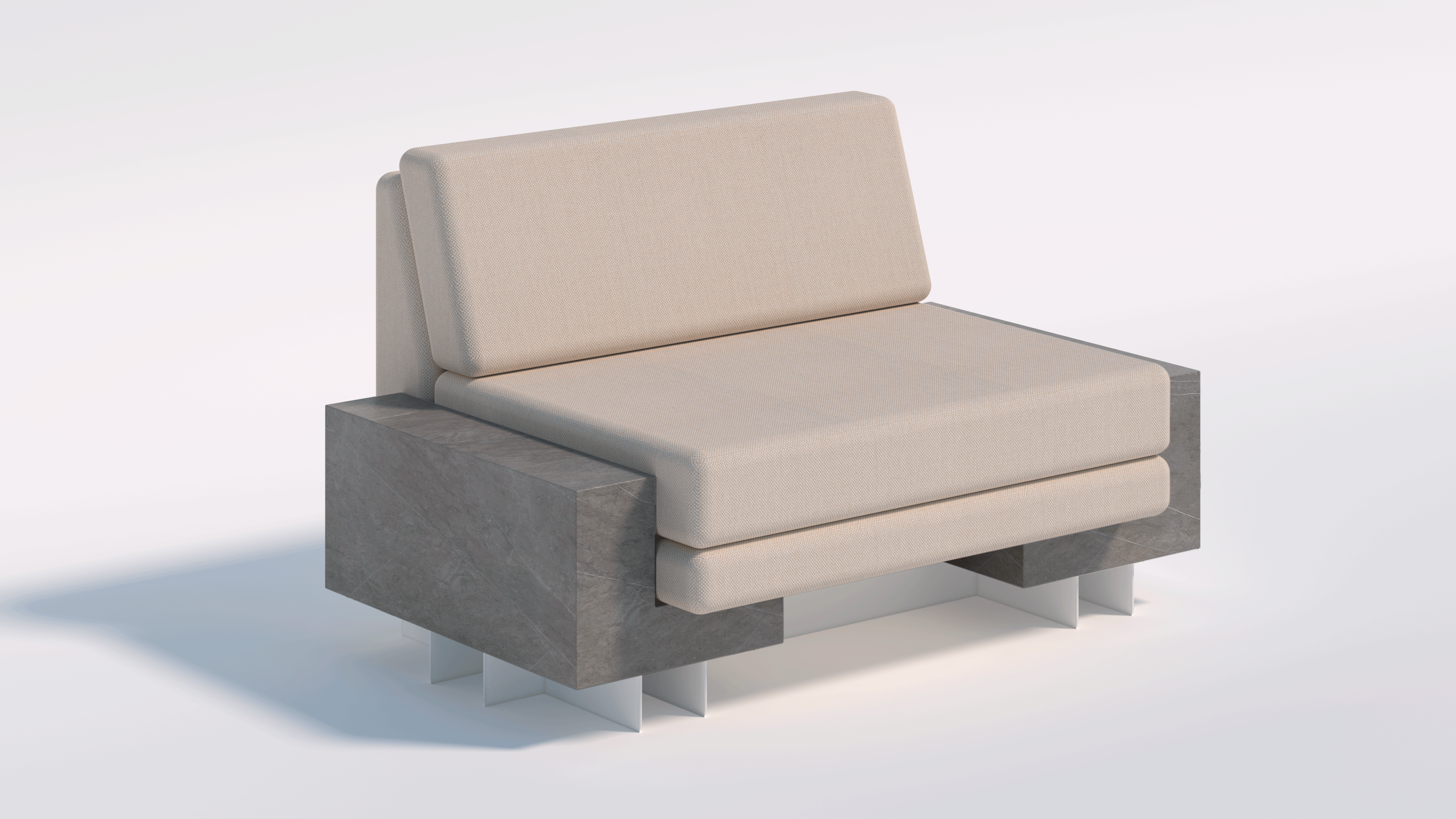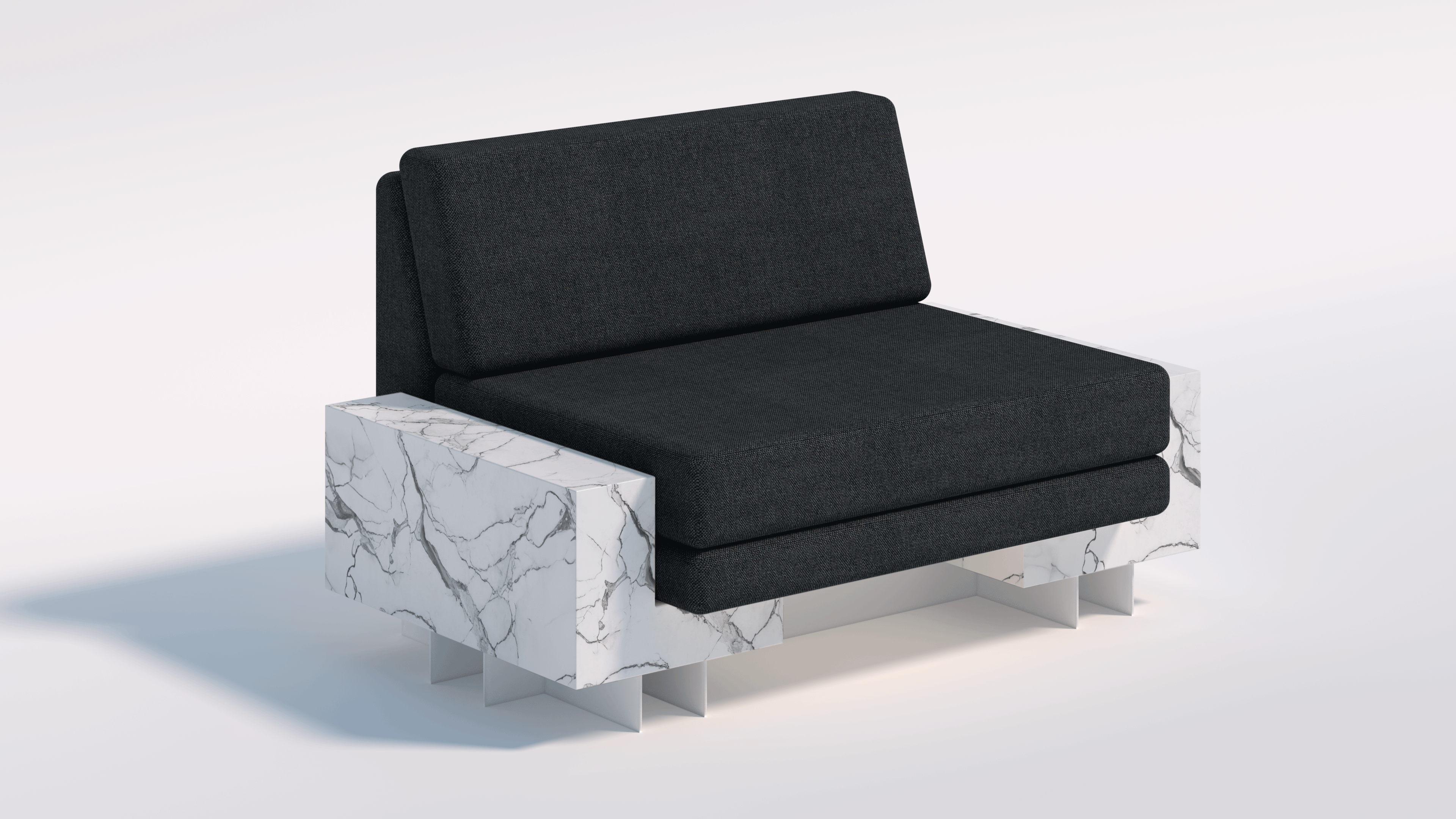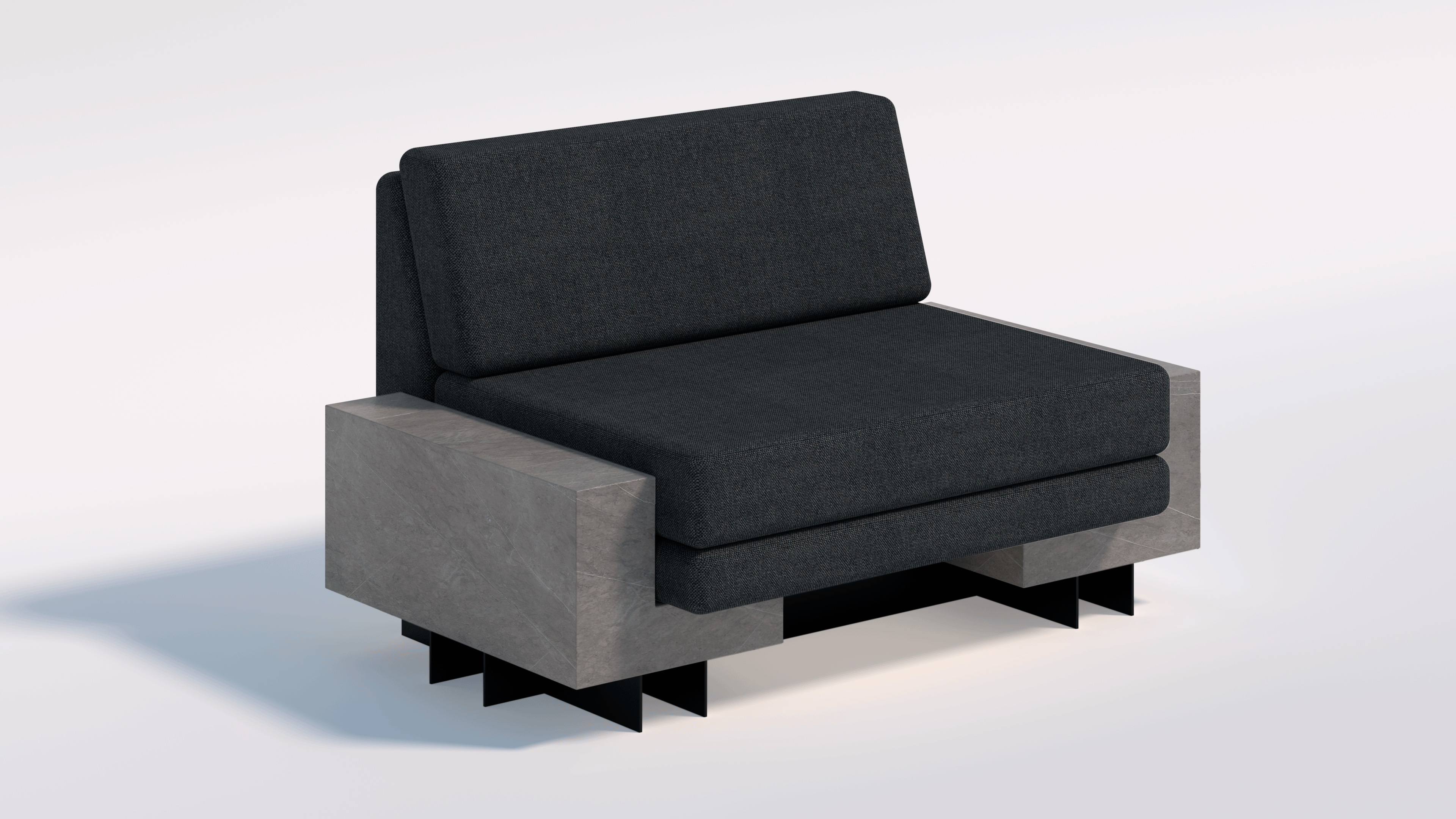 Sus laterales, esculpidos en mármol natural y labrados a mano por artesanos expertos, aportan una presencia escultórica que evoca solidez, elegancia y atemporalidad. Cada veta revela la unicidad del material, haciendo de cada pieza una obra irrepetible.