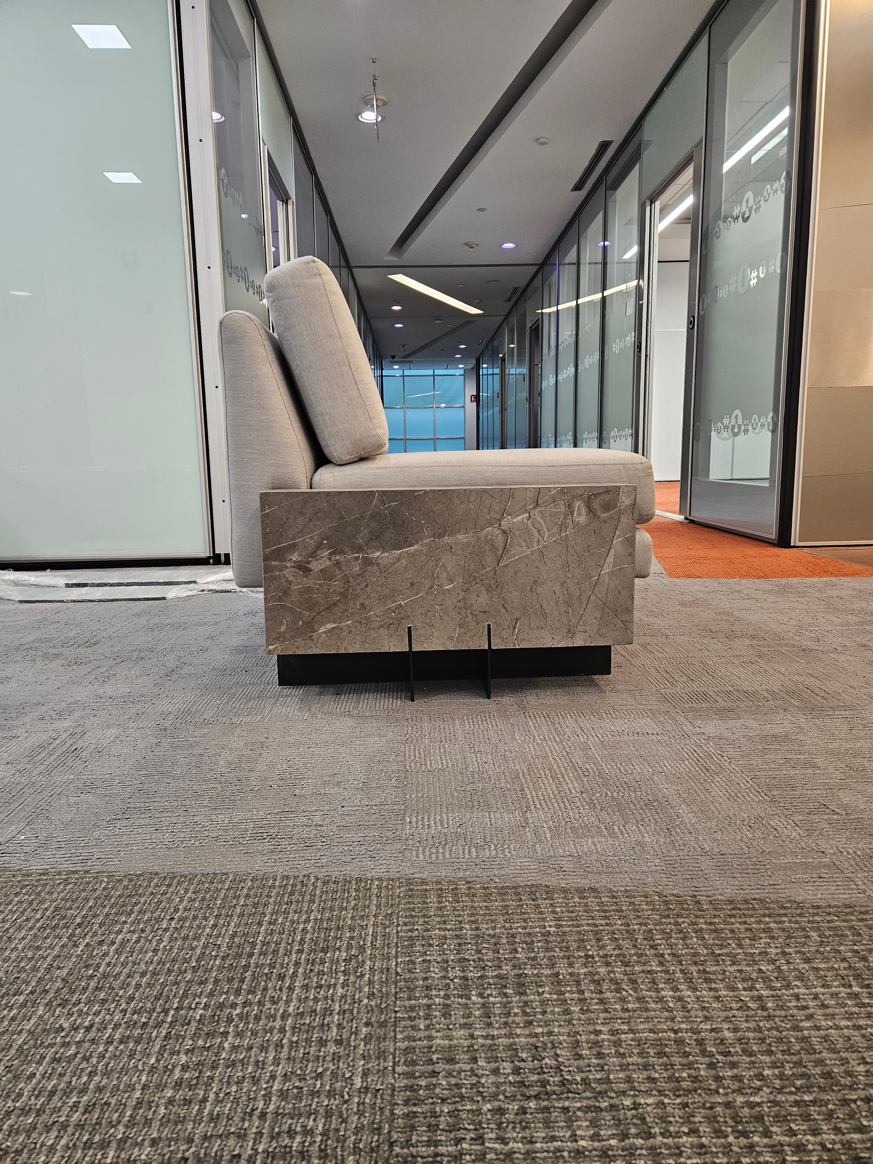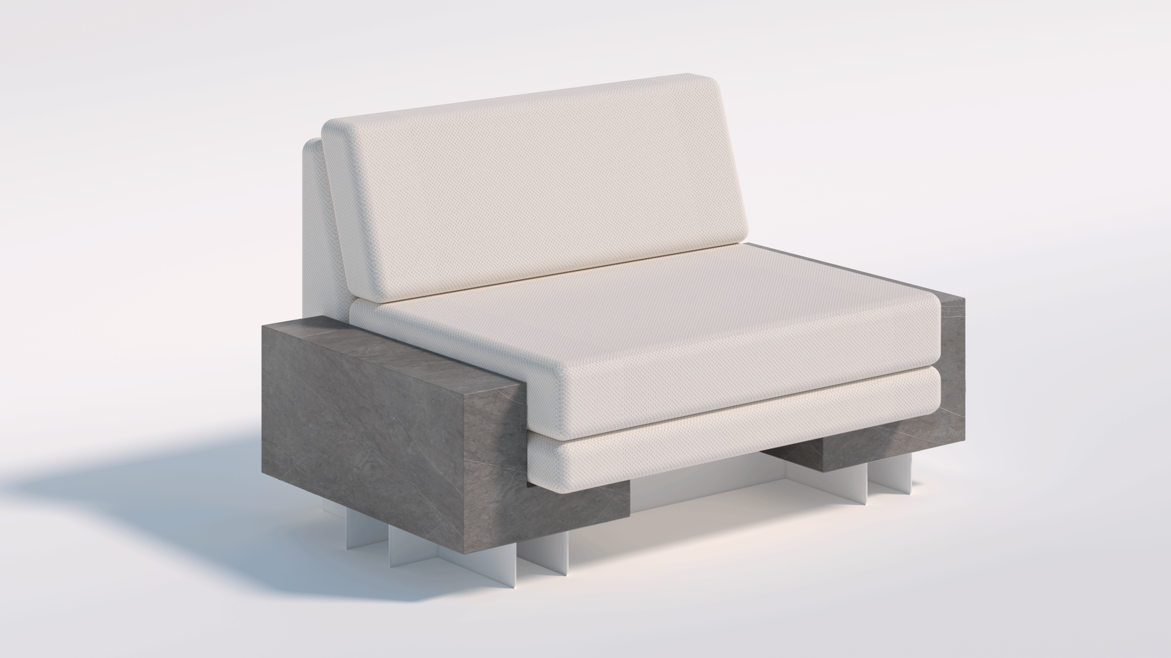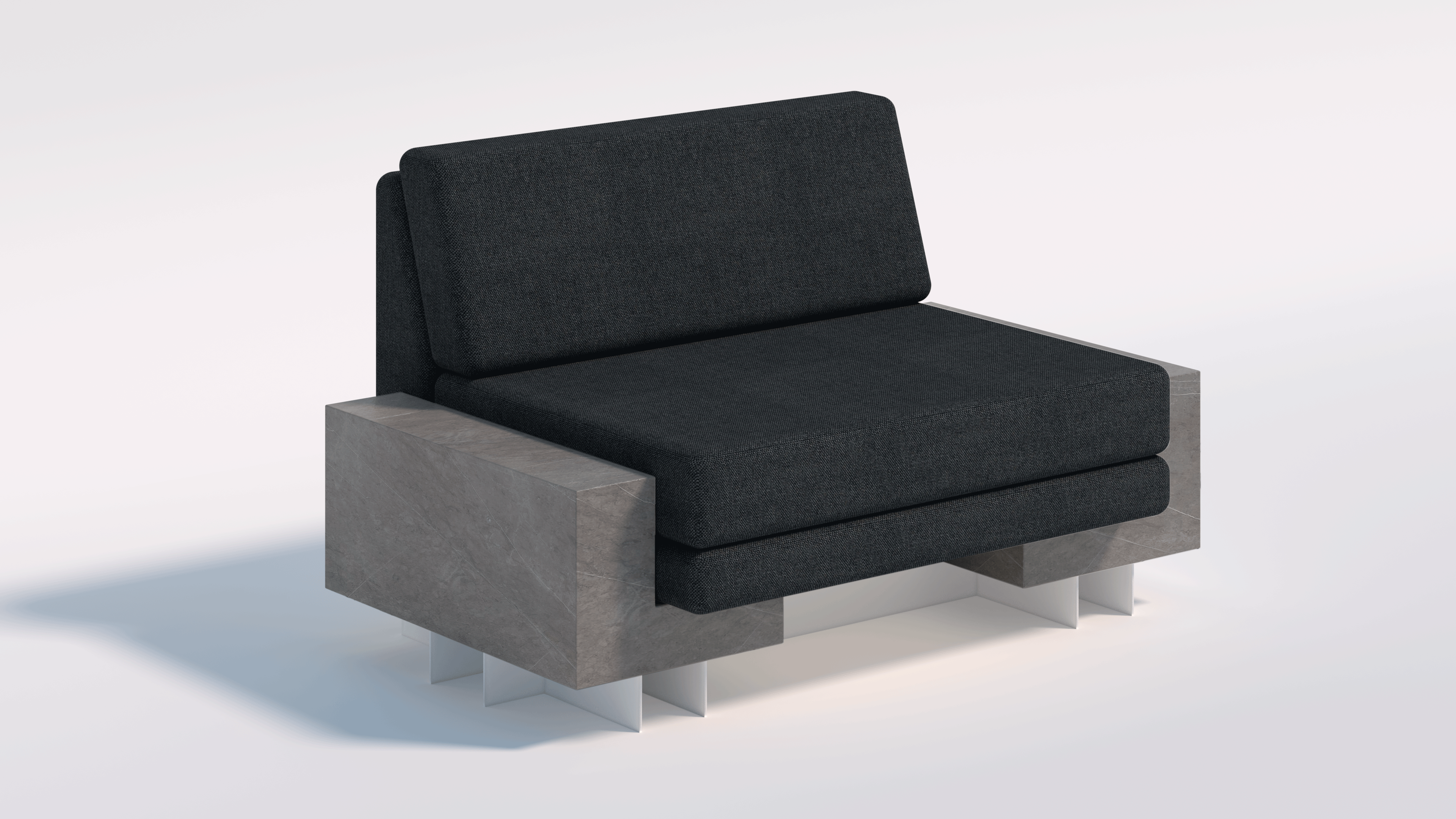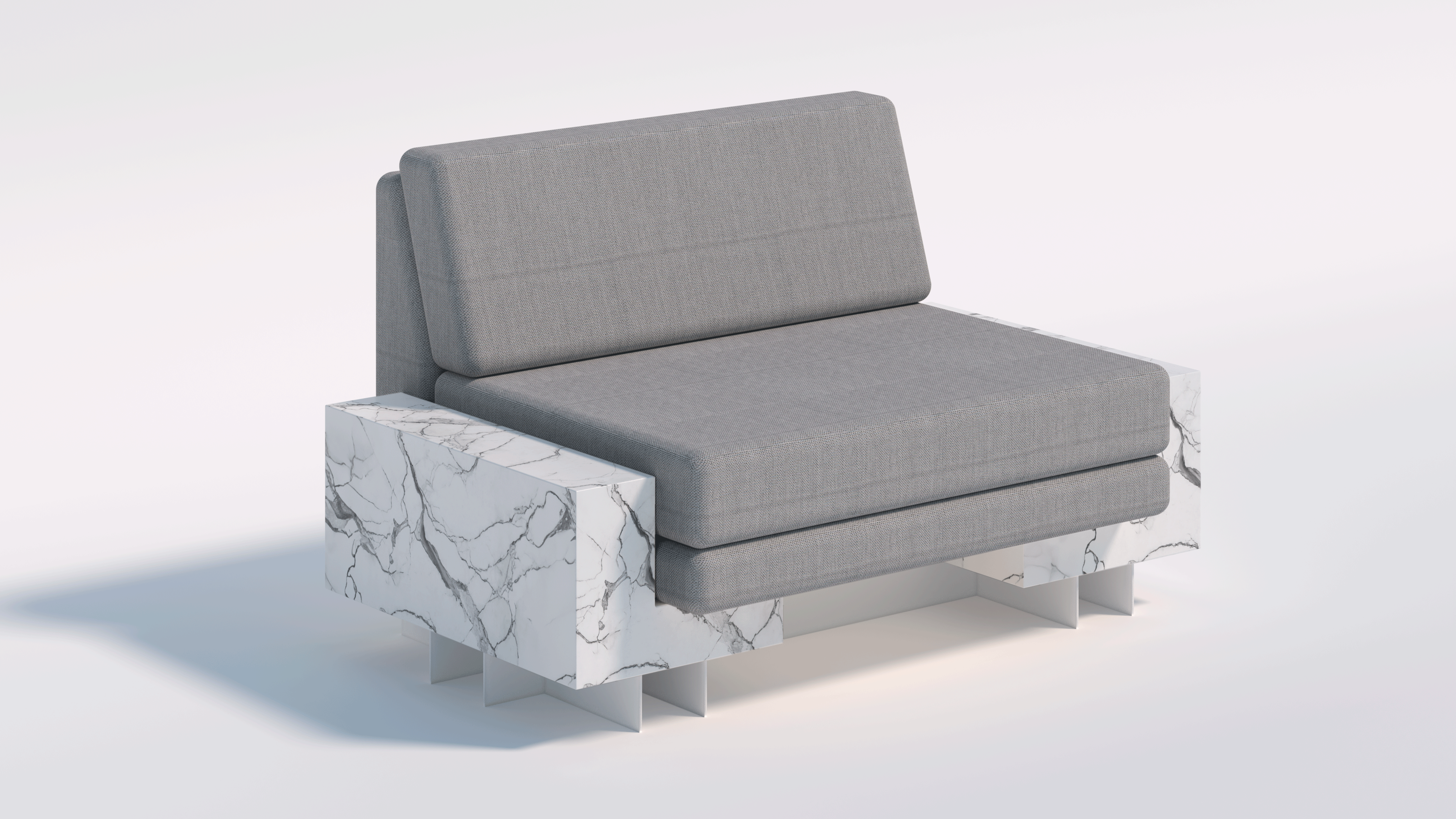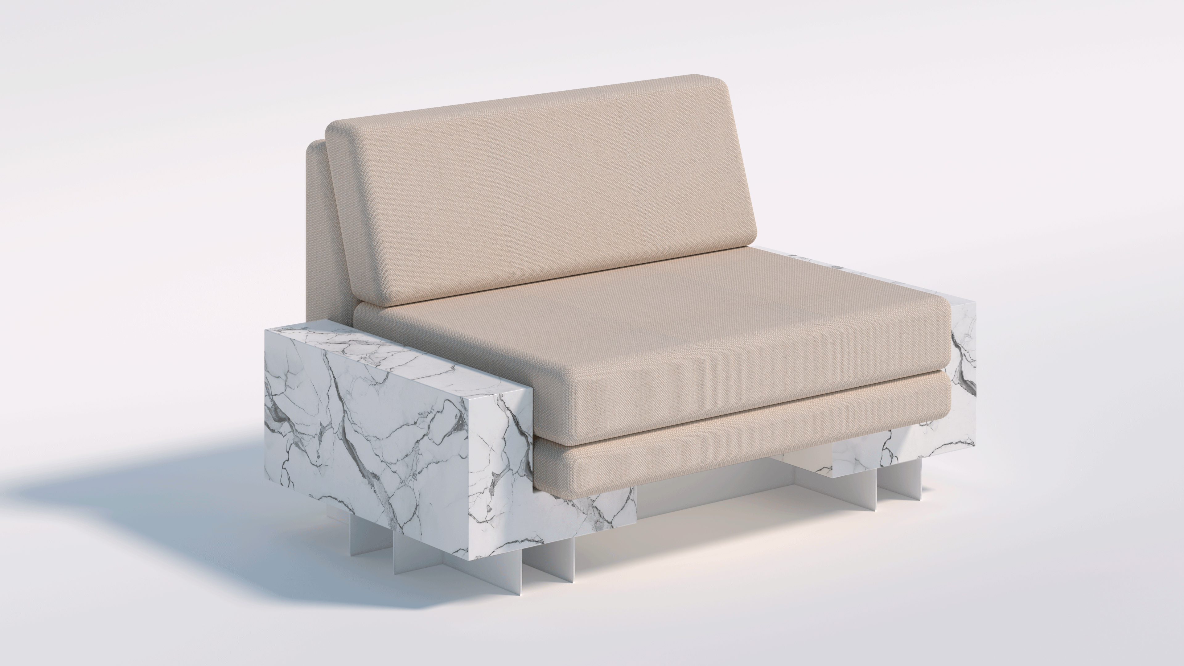 Sus laterales, esculpidos en mármol natural y labrados a mano por artesanos expertos, aportan una presencia escultórica que evoca solidez, elegancia y atemporalidad. Cada veta revela la unicidad del material, haciendo de cada pieza una obra irrepetible.
