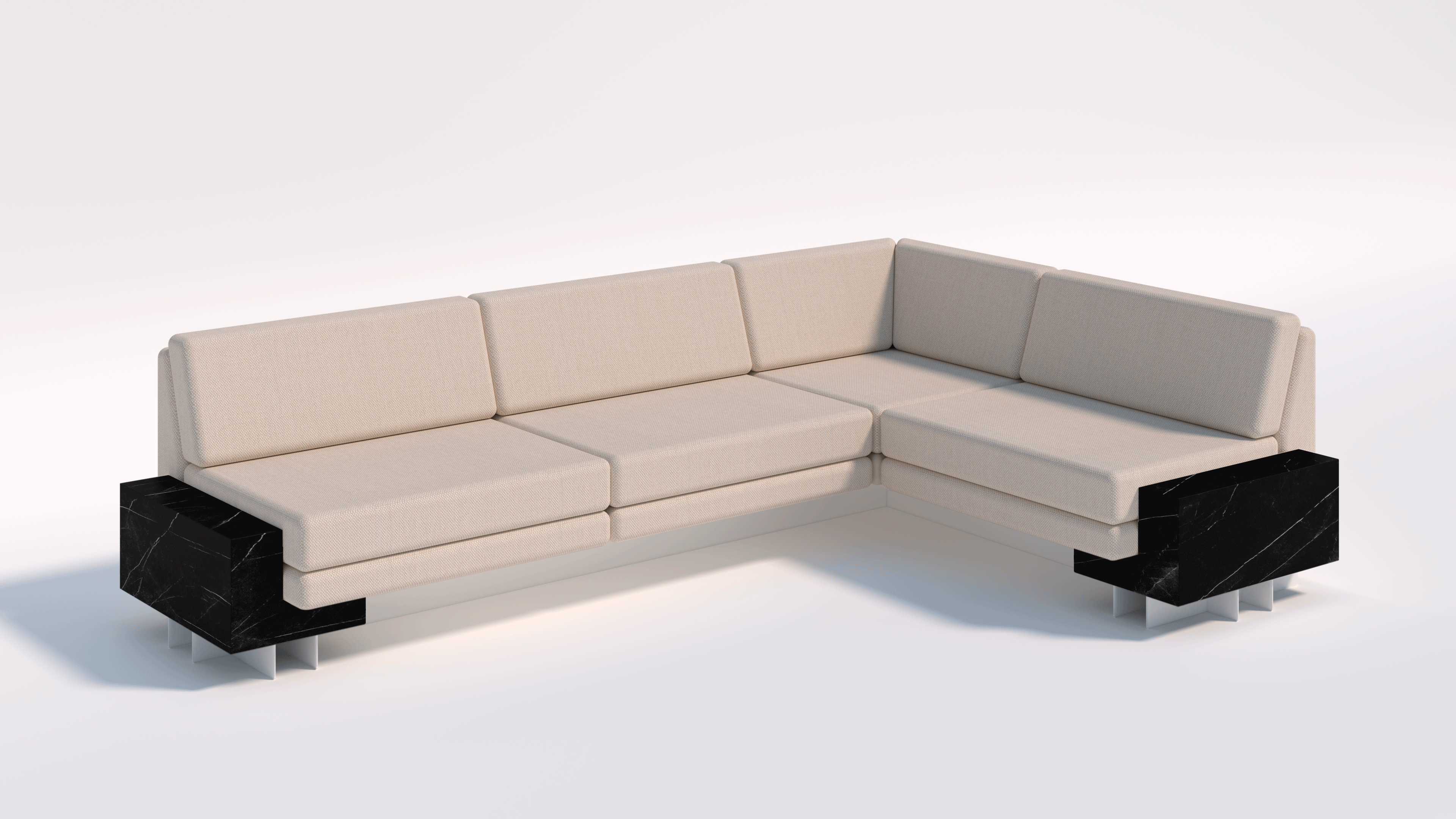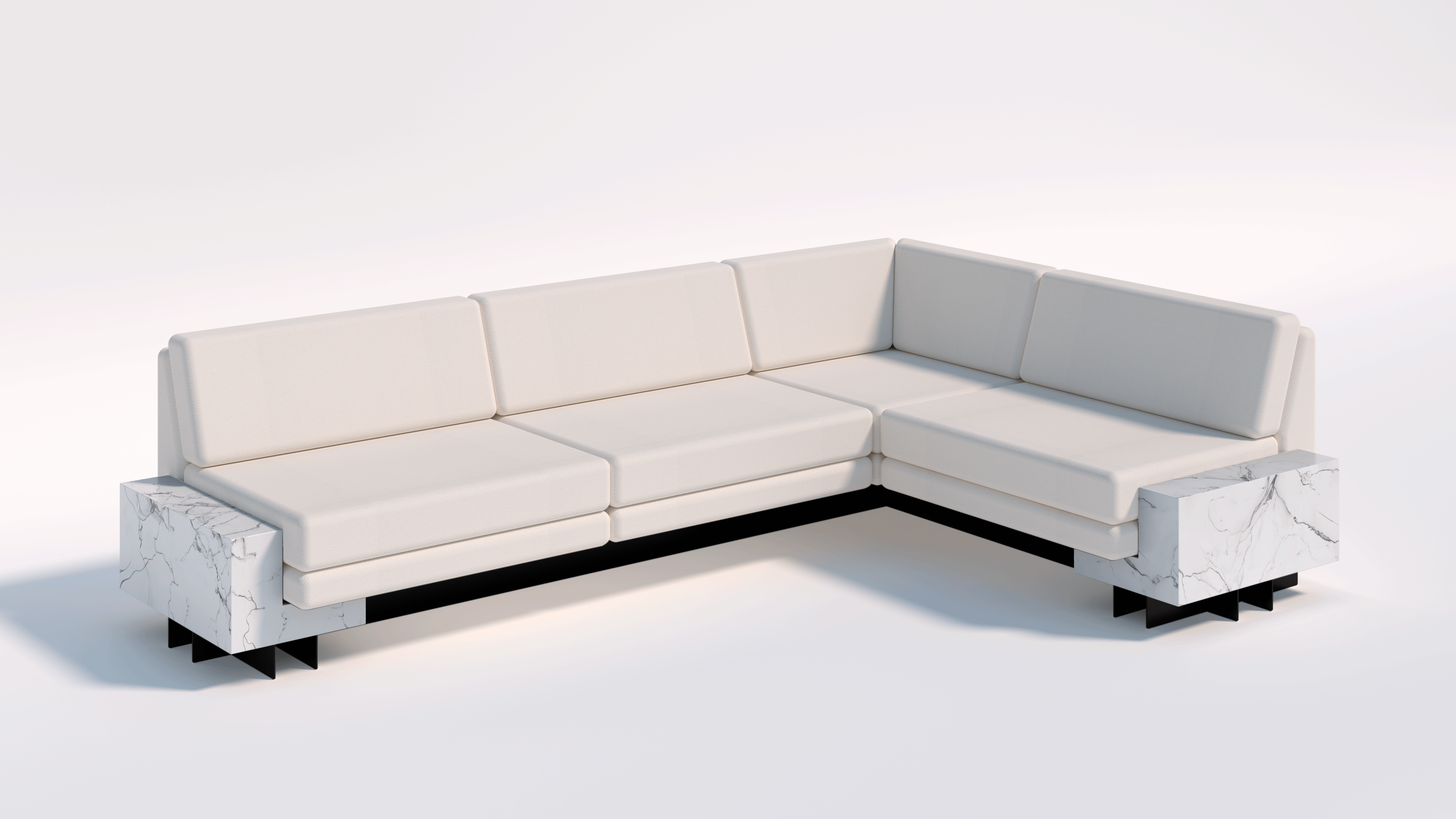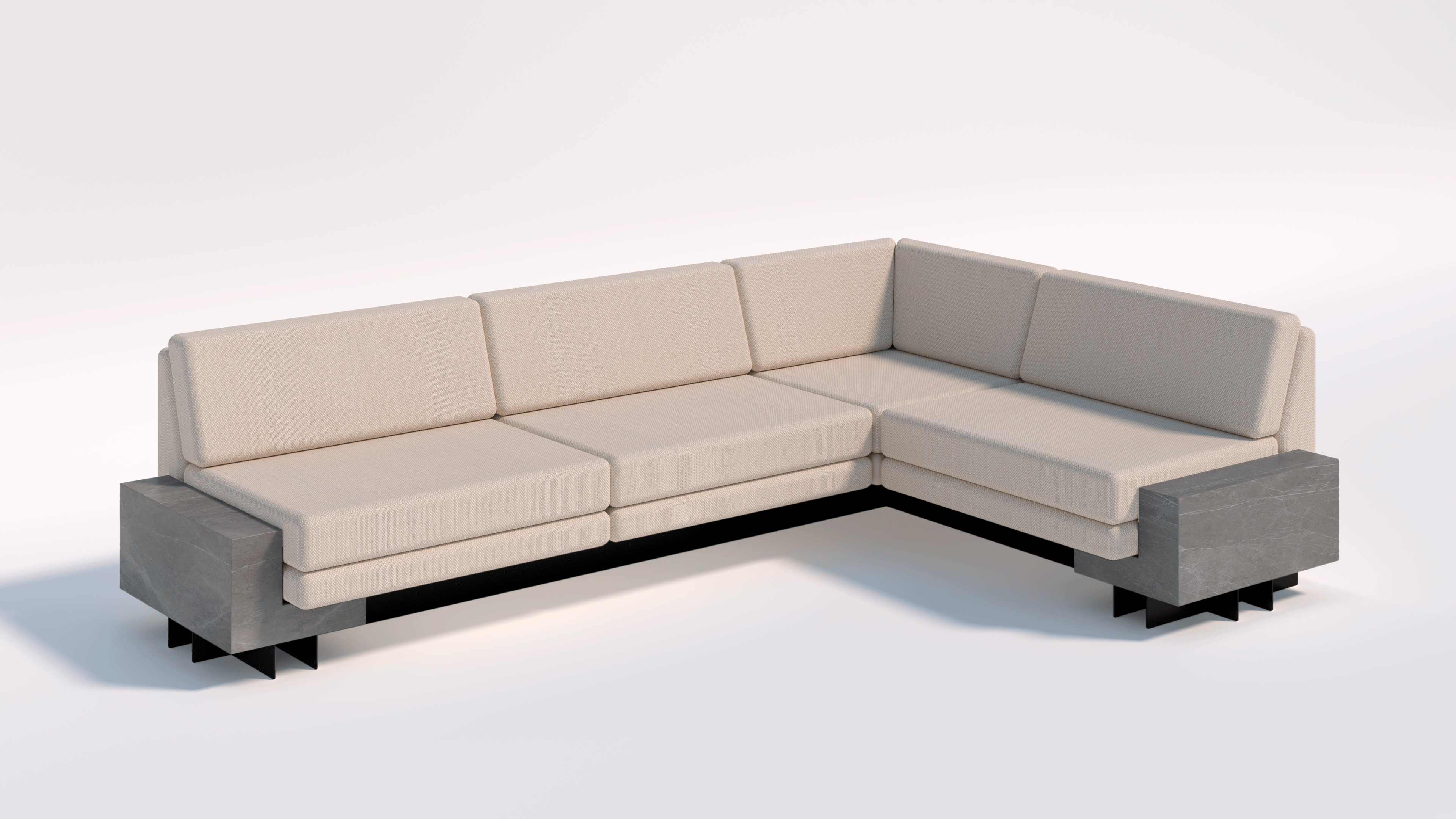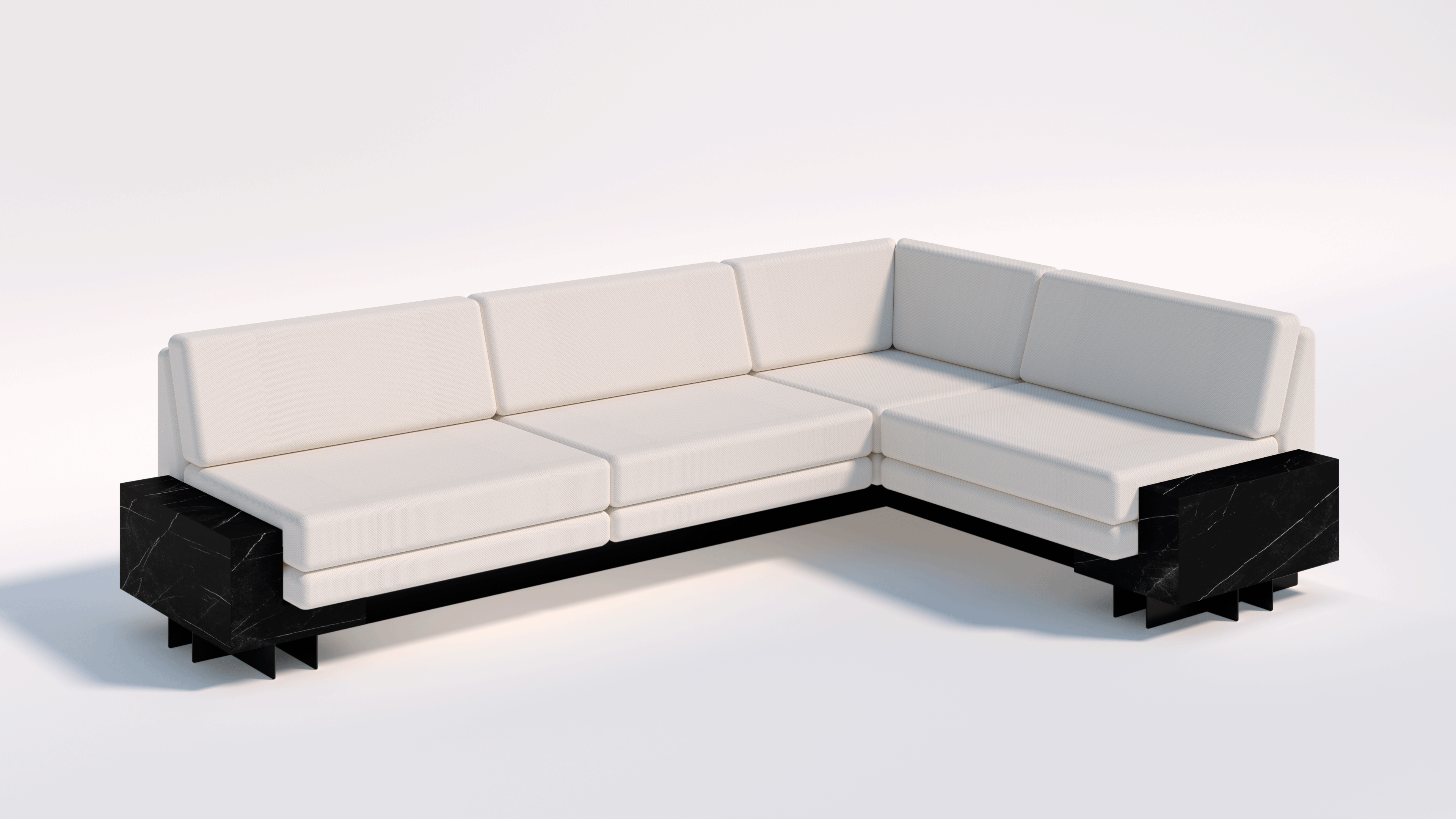 Sus laterales, esculpidos en mármol natural y labrados a mano por artesanos expertos, aportan una presencia escultórica que evoca solidez, elegancia y atemporalidad. Cada veta revela la unicidad del material, haciendo de cada pieza una obra irrepetible.