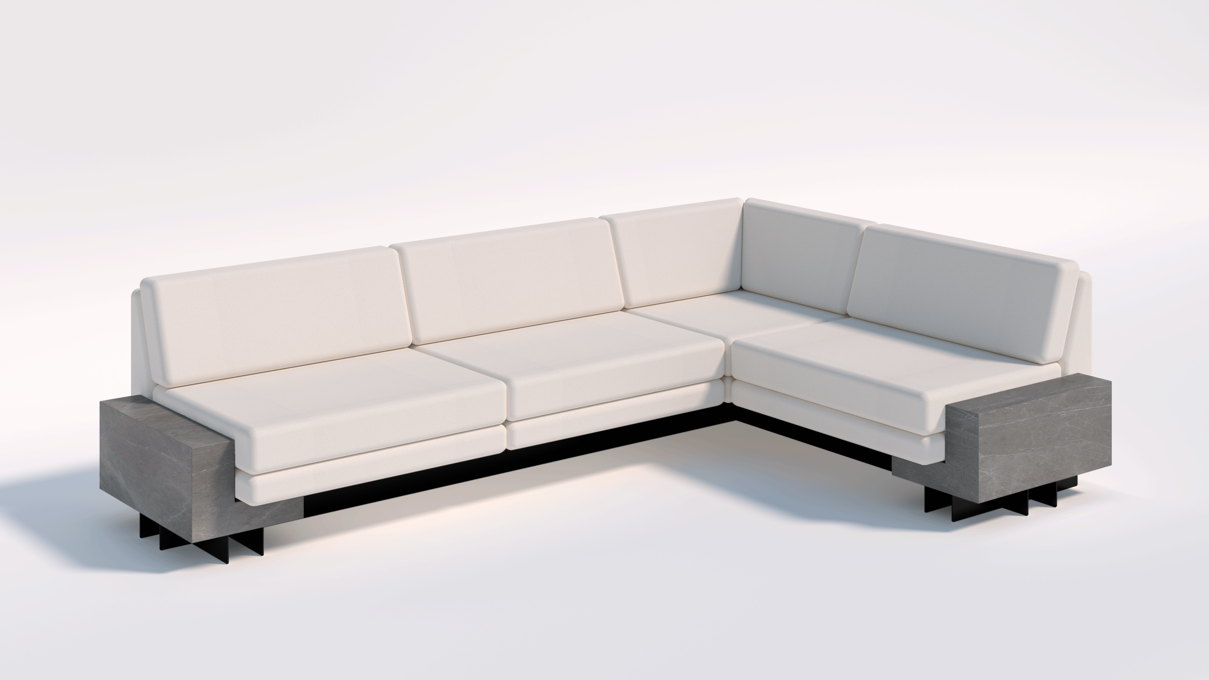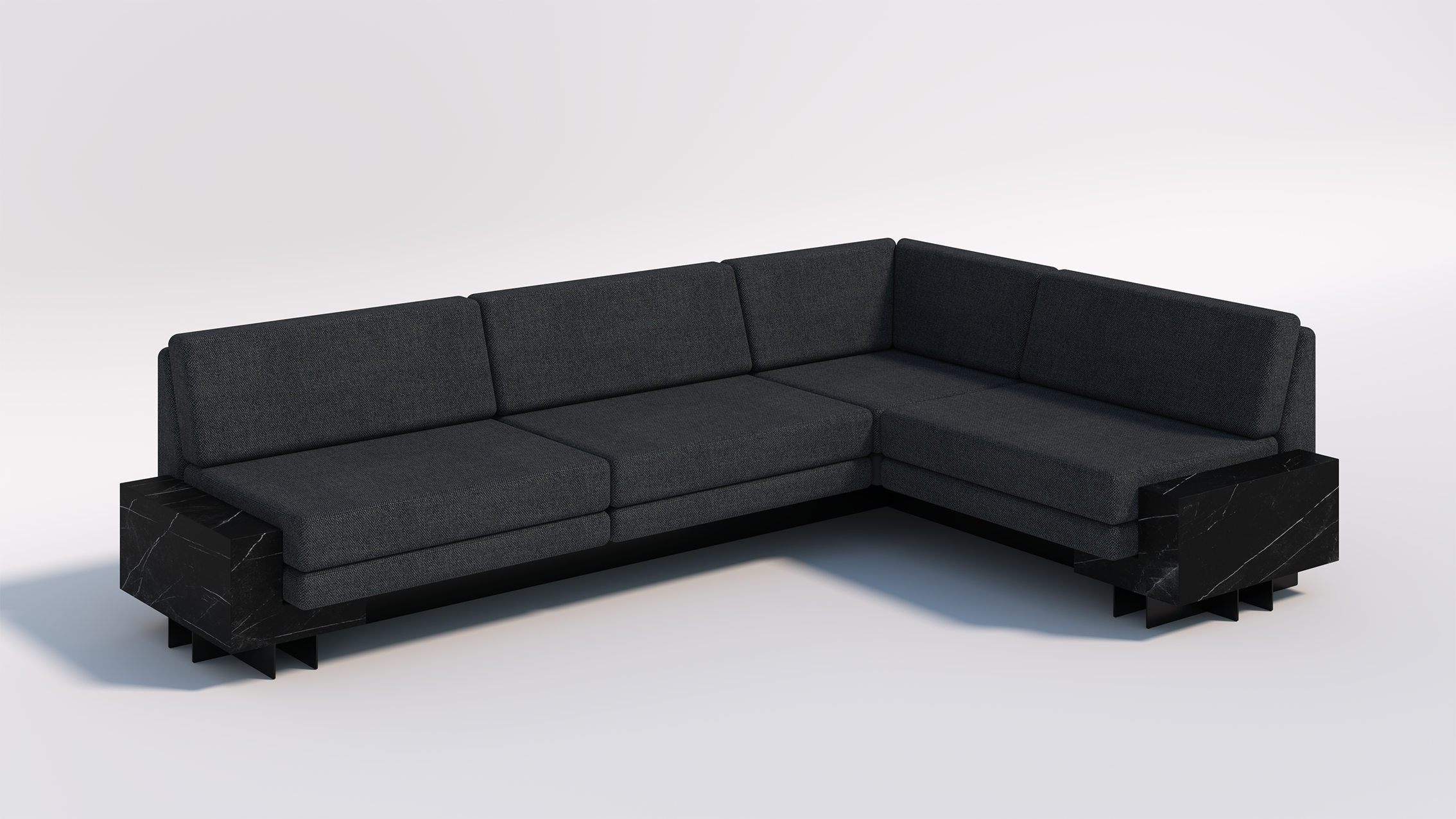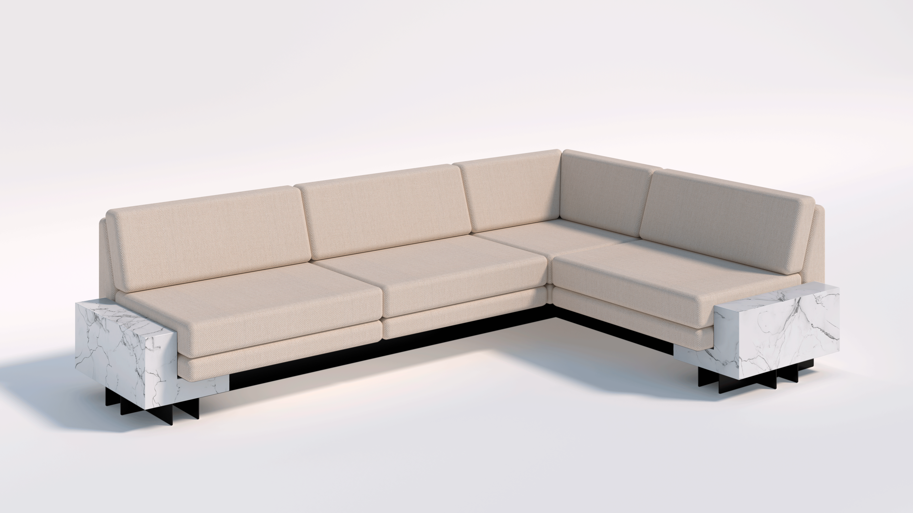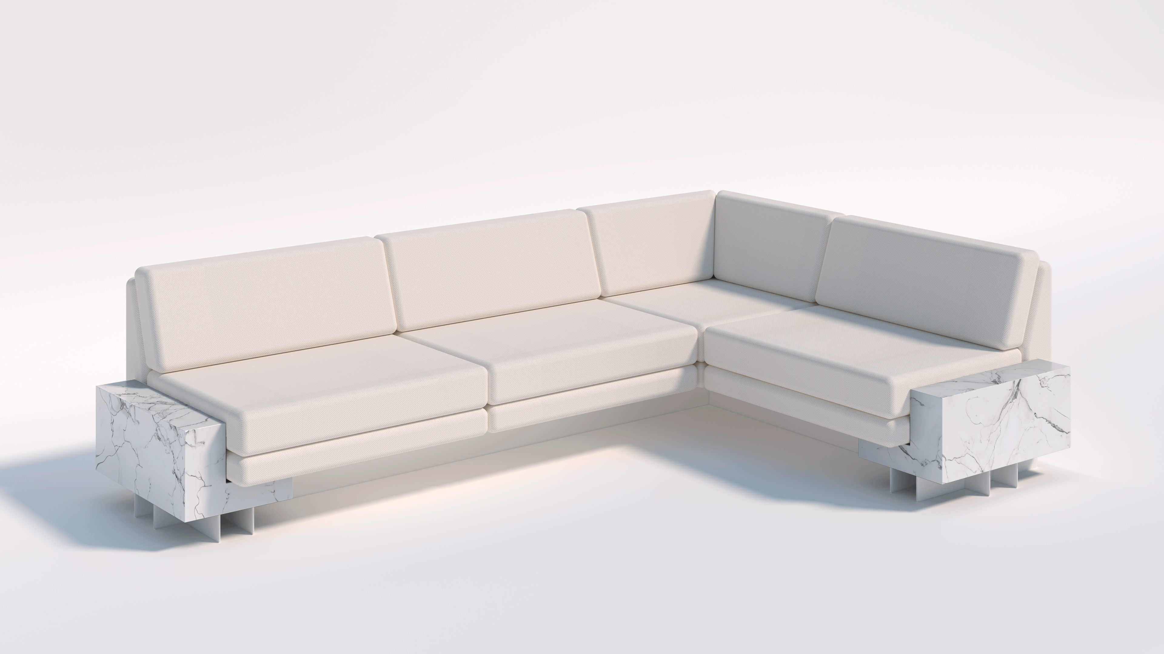 Sus laterales, esculpidos en mármol natural y labrados a mano por artesanos expertos, aportan una presencia escultórica que evoca solidez, elegancia y atemporalidad. Cada veta revela la unicidad del material, haciendo de cada pieza una obra irrepetible.