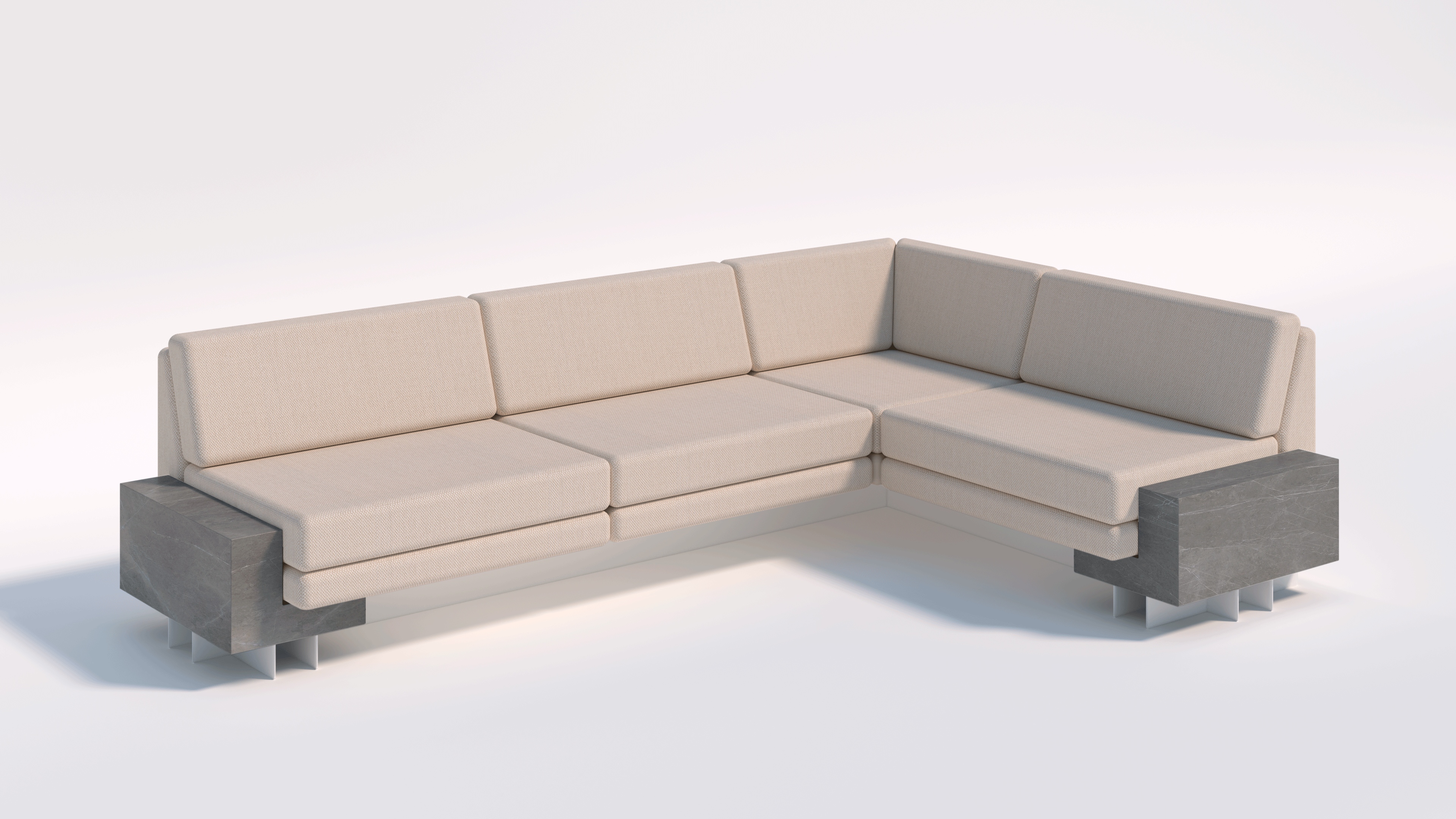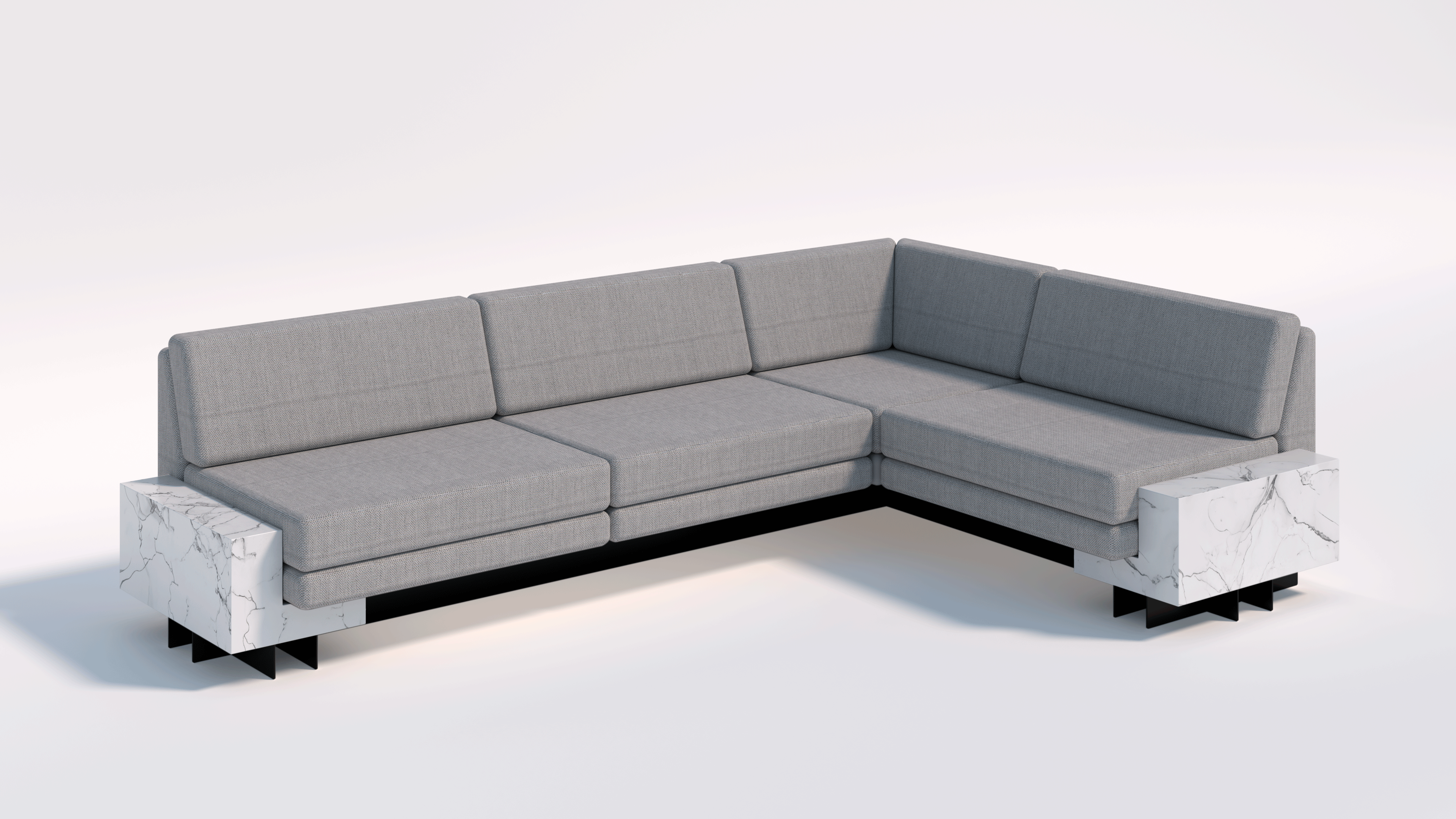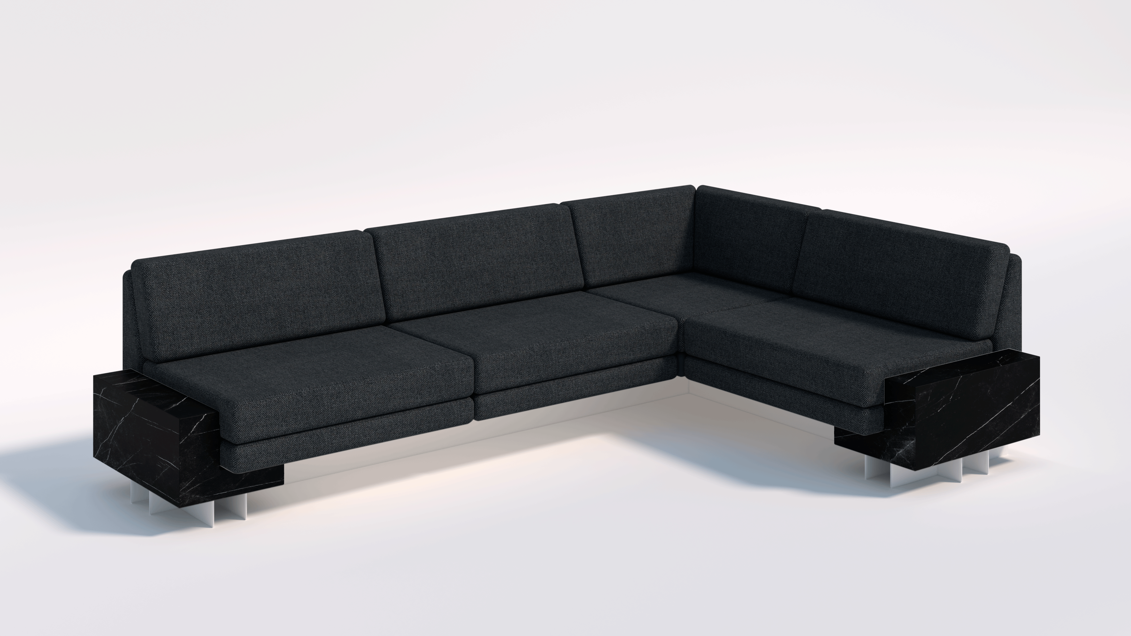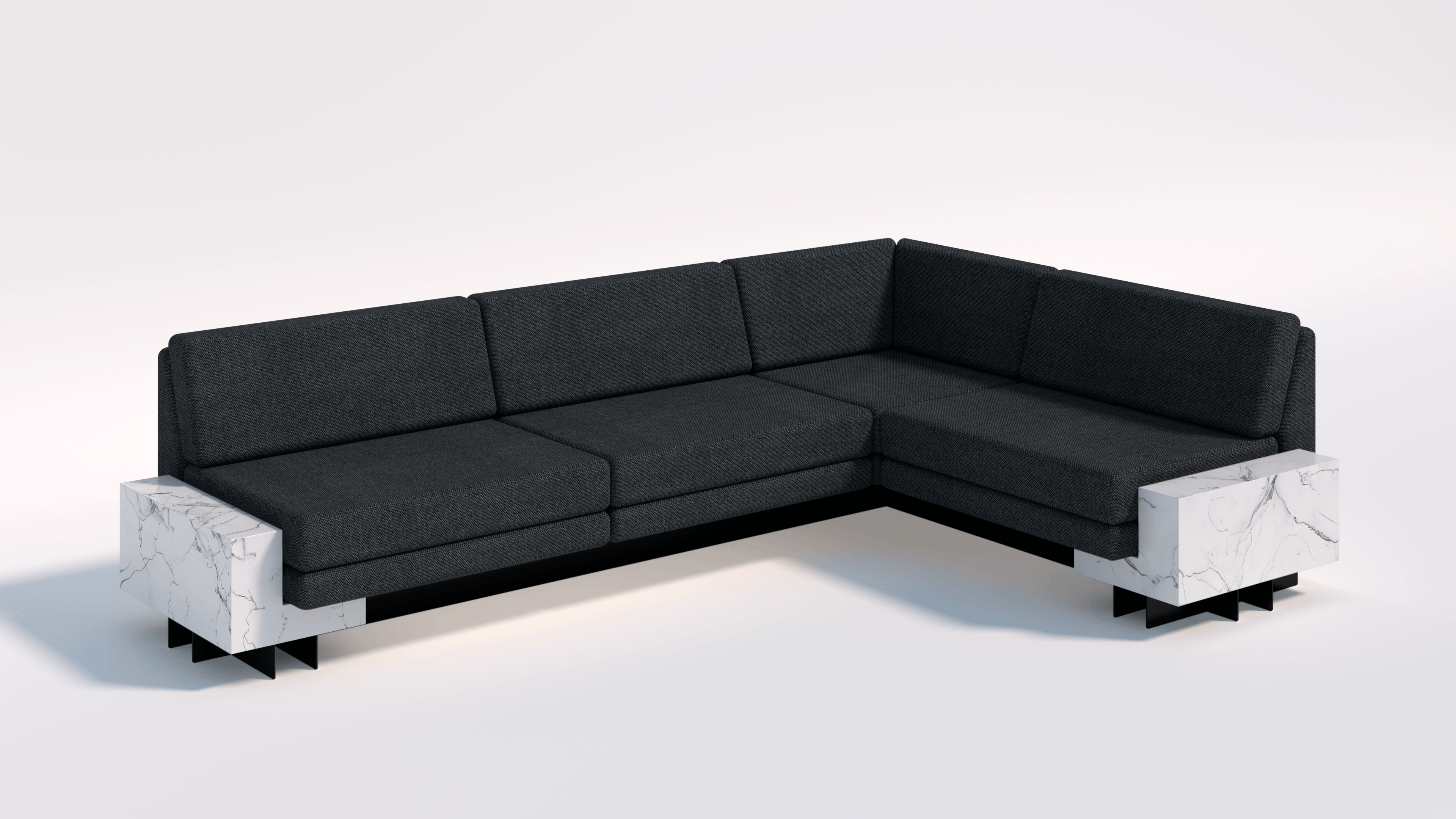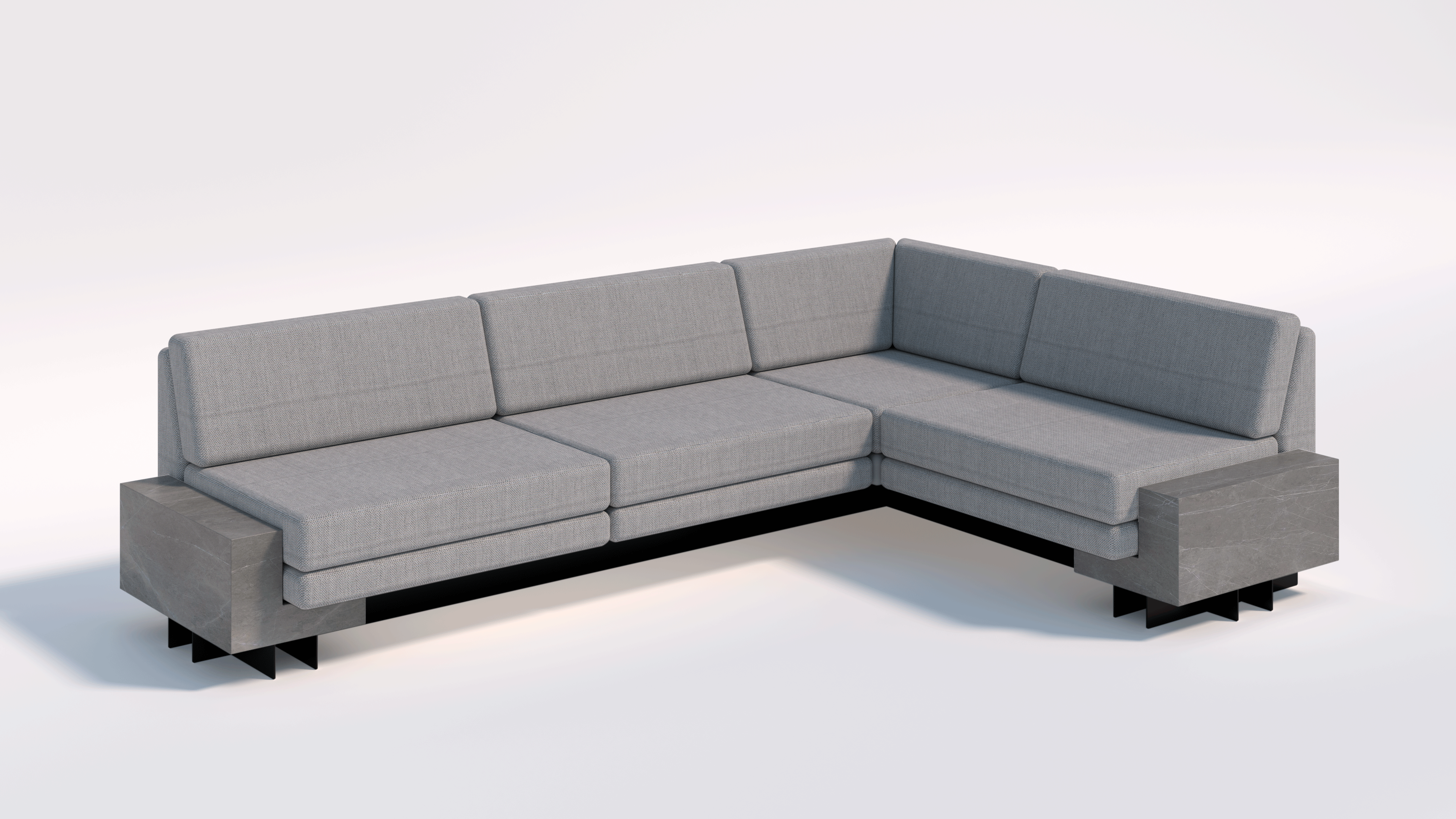 Sus laterales, esculpidos en mármol natural y labrados a mano por artesanos expertos, aportan una presencia escultórica que evoca solidez, elegancia y atemporalidad. Cada veta revela la unicidad del material, haciendo de cada pieza una obra irrepetible.
