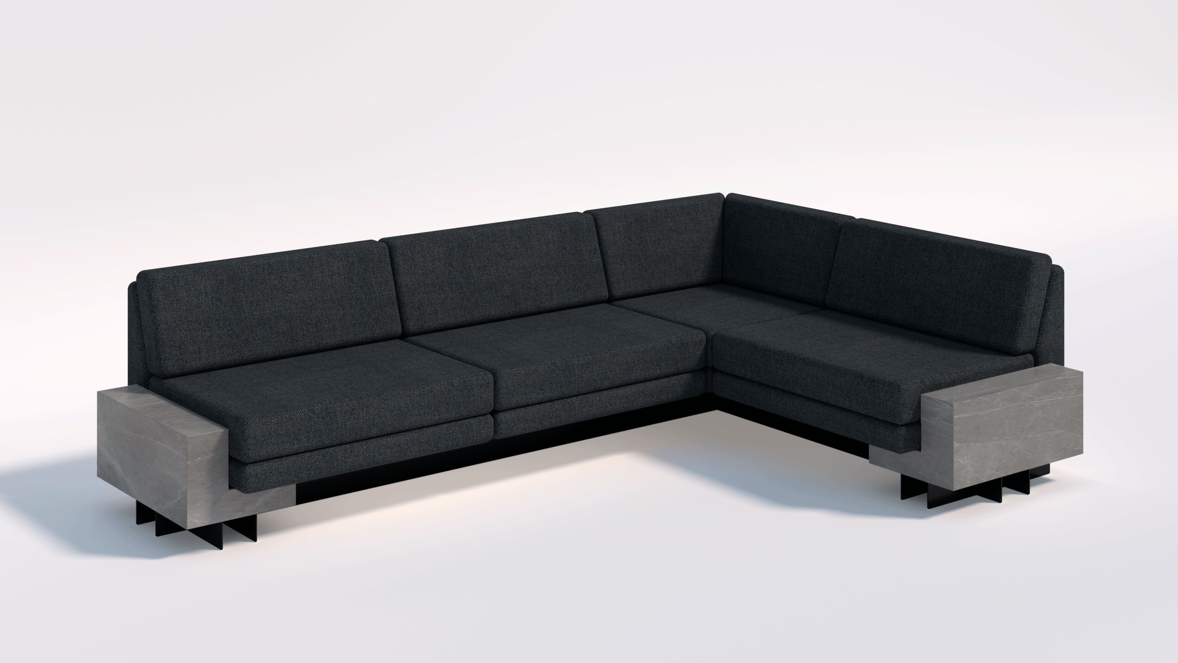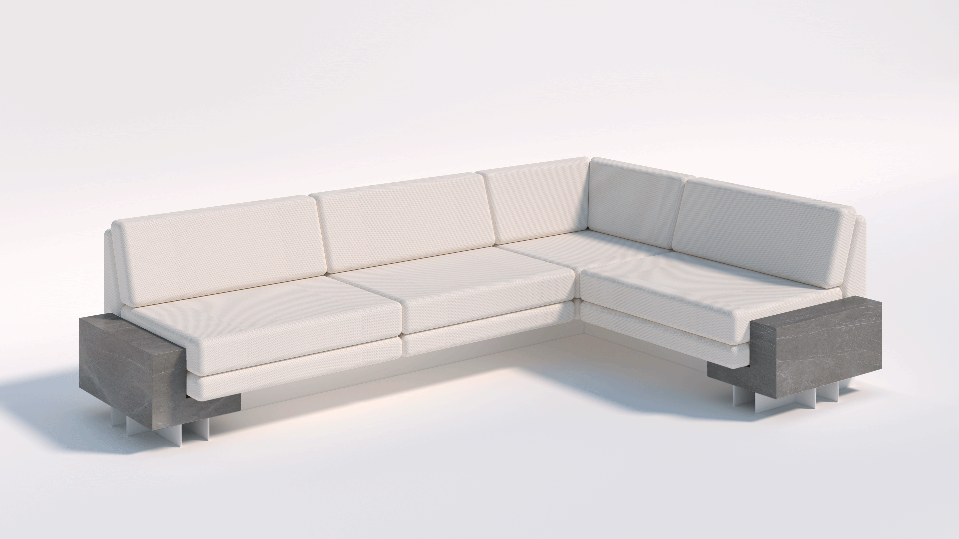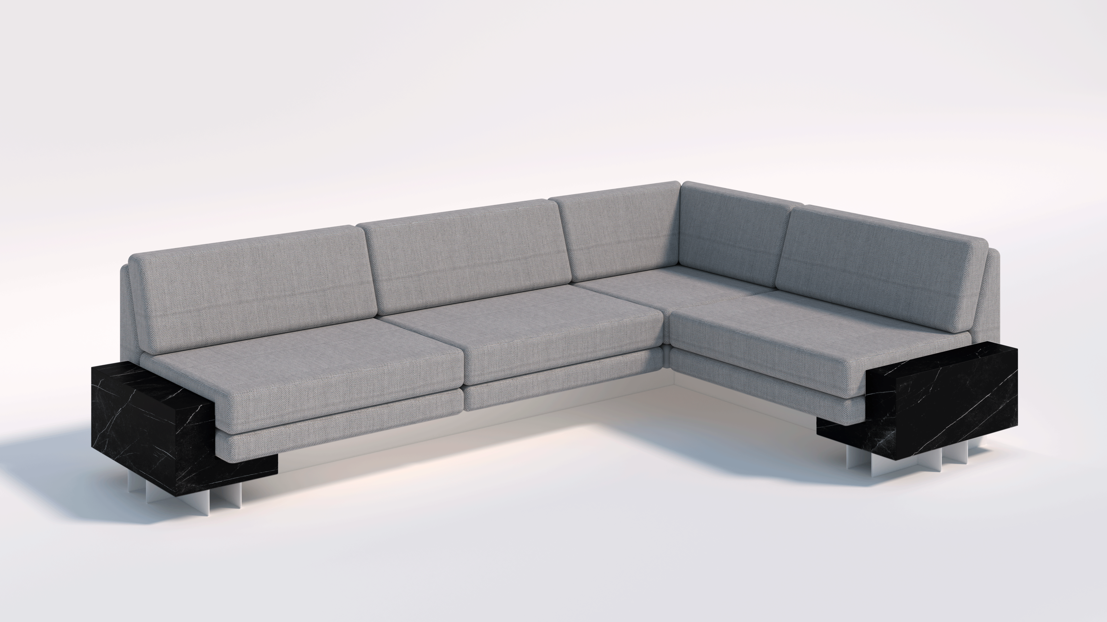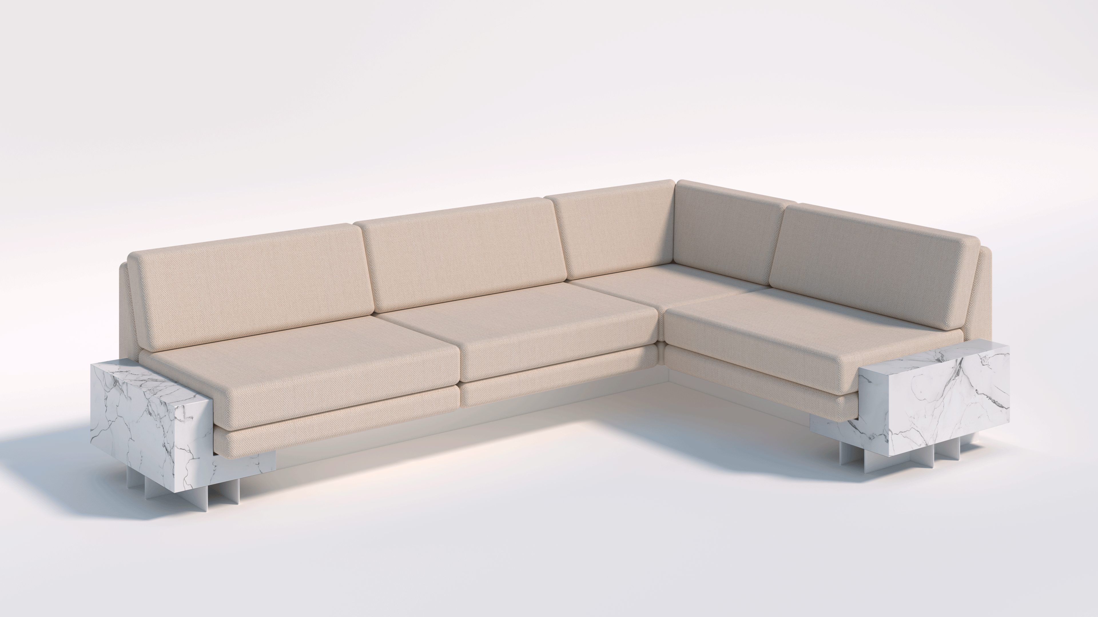 Sus laterales, esculpidos en mármol natural y labrados a mano por artesanos expertos, aportan una presencia escultórica que evoca solidez, elegancia y atemporalidad. Cada veta revela la unicidad del material, haciendo de cada pieza una obra irrepetible.