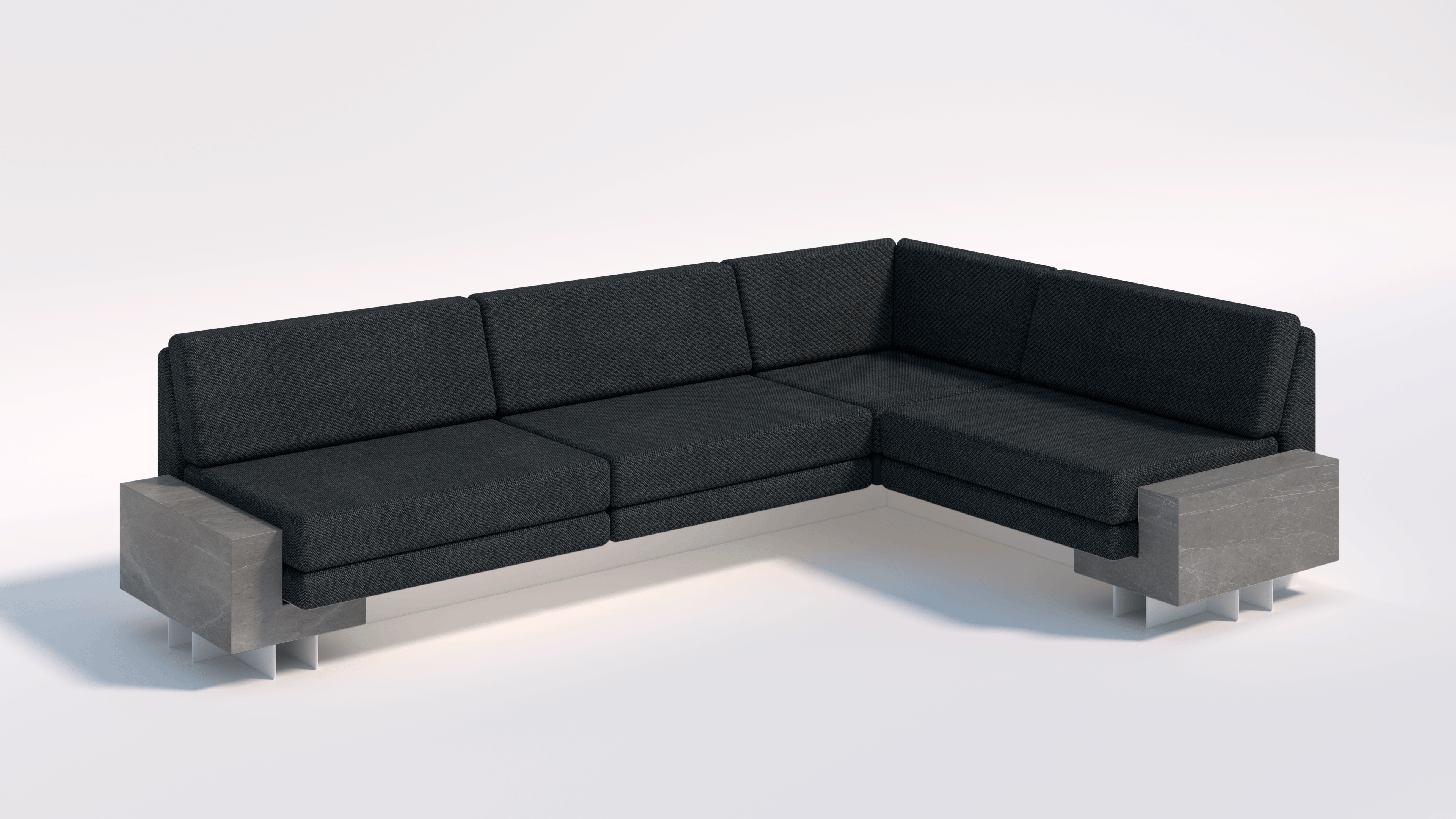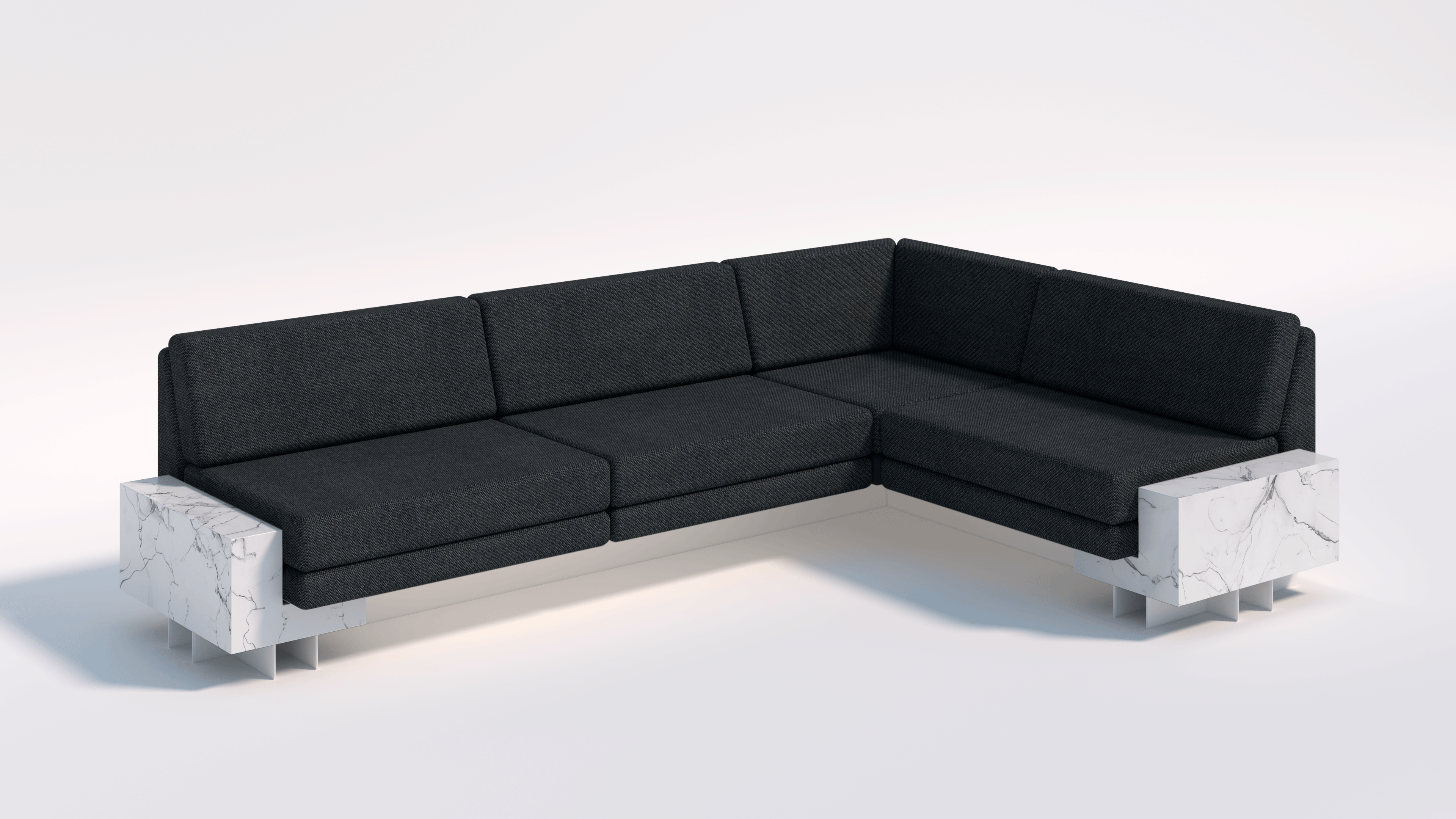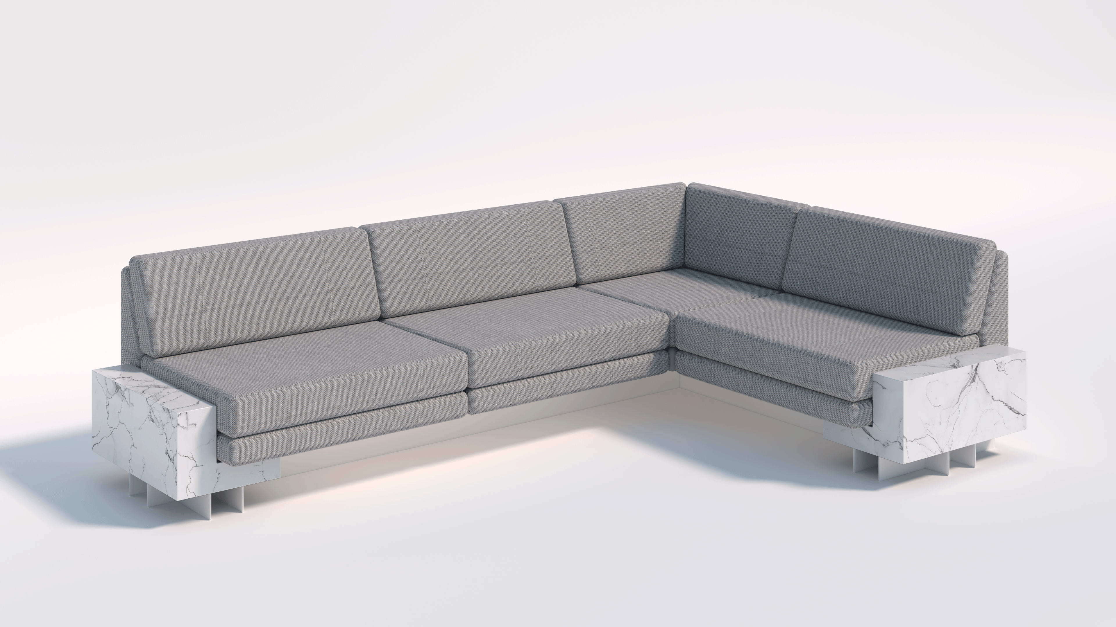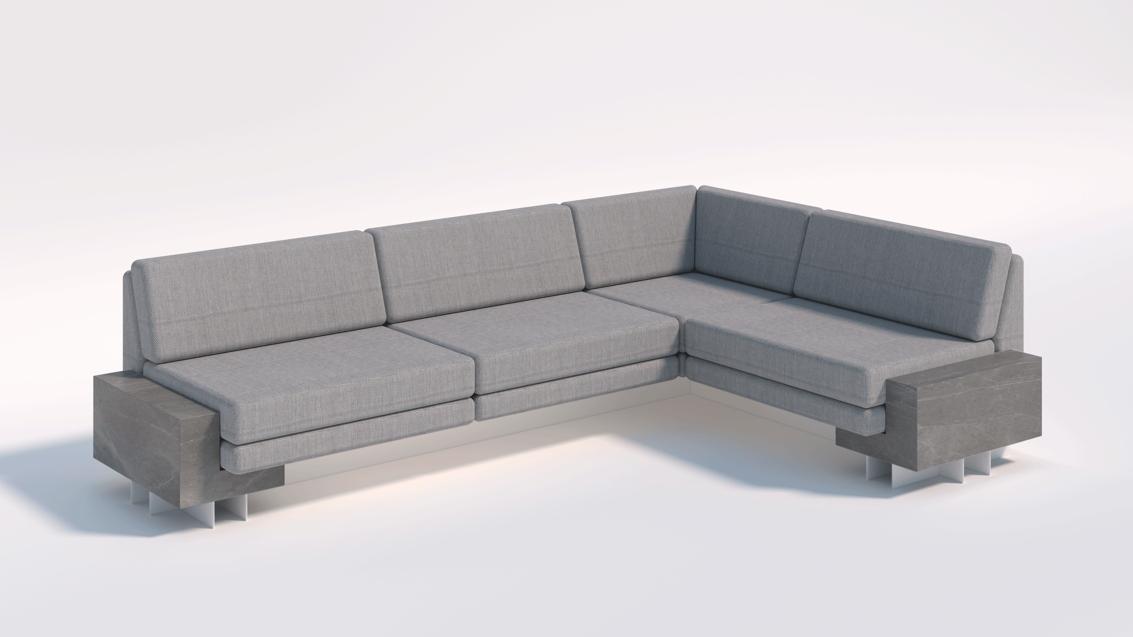 Sus laterales, esculpidos en mármol natural y labrados a mano por artesanos expertos, aportan una presencia escultórica que evoca solidez, elegancia y atemporalidad. Cada veta revela la unicidad del material, haciendo de cada pieza una obra irrepetible.