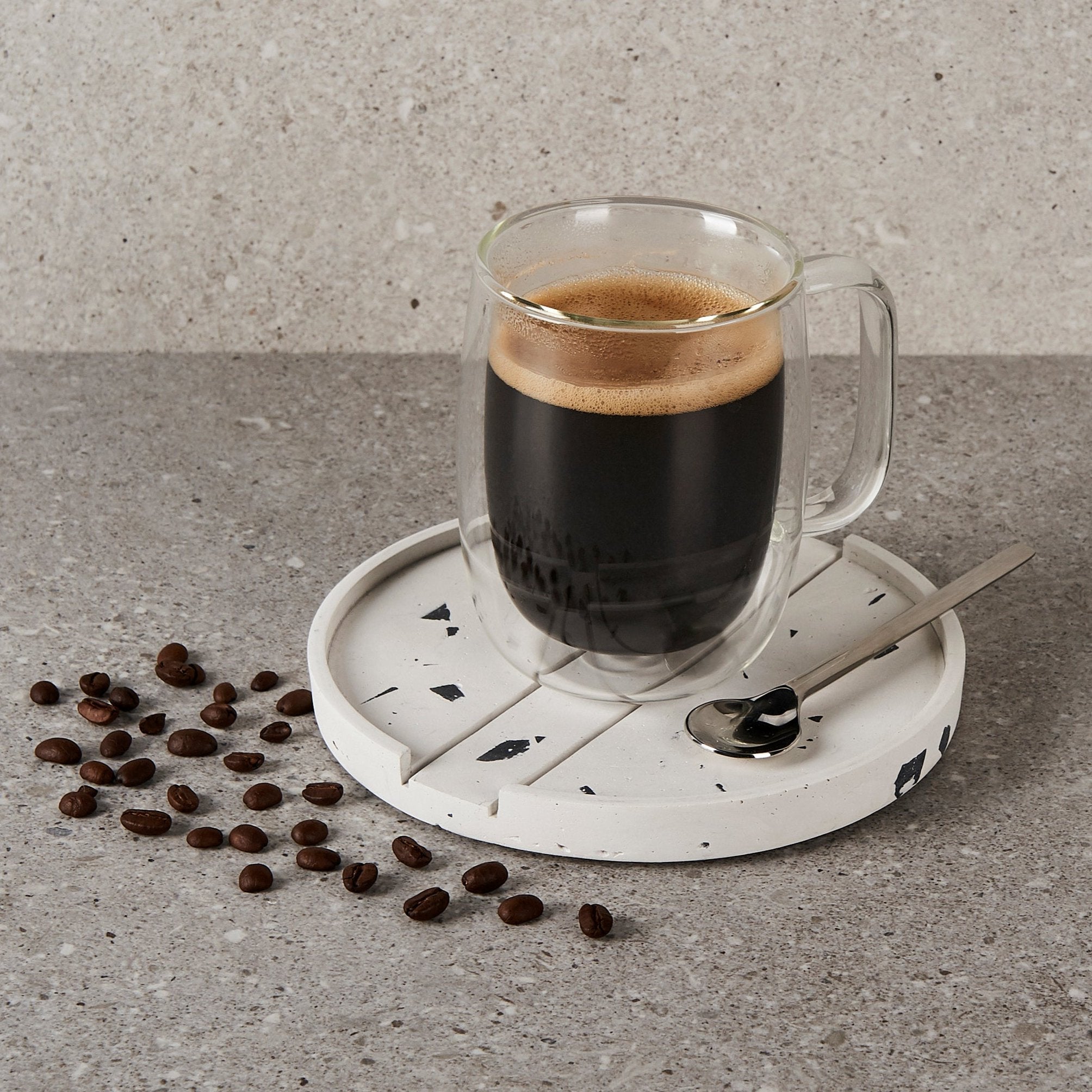 - Cada pieza incorpora fragmentos de mármol natural en su receta.