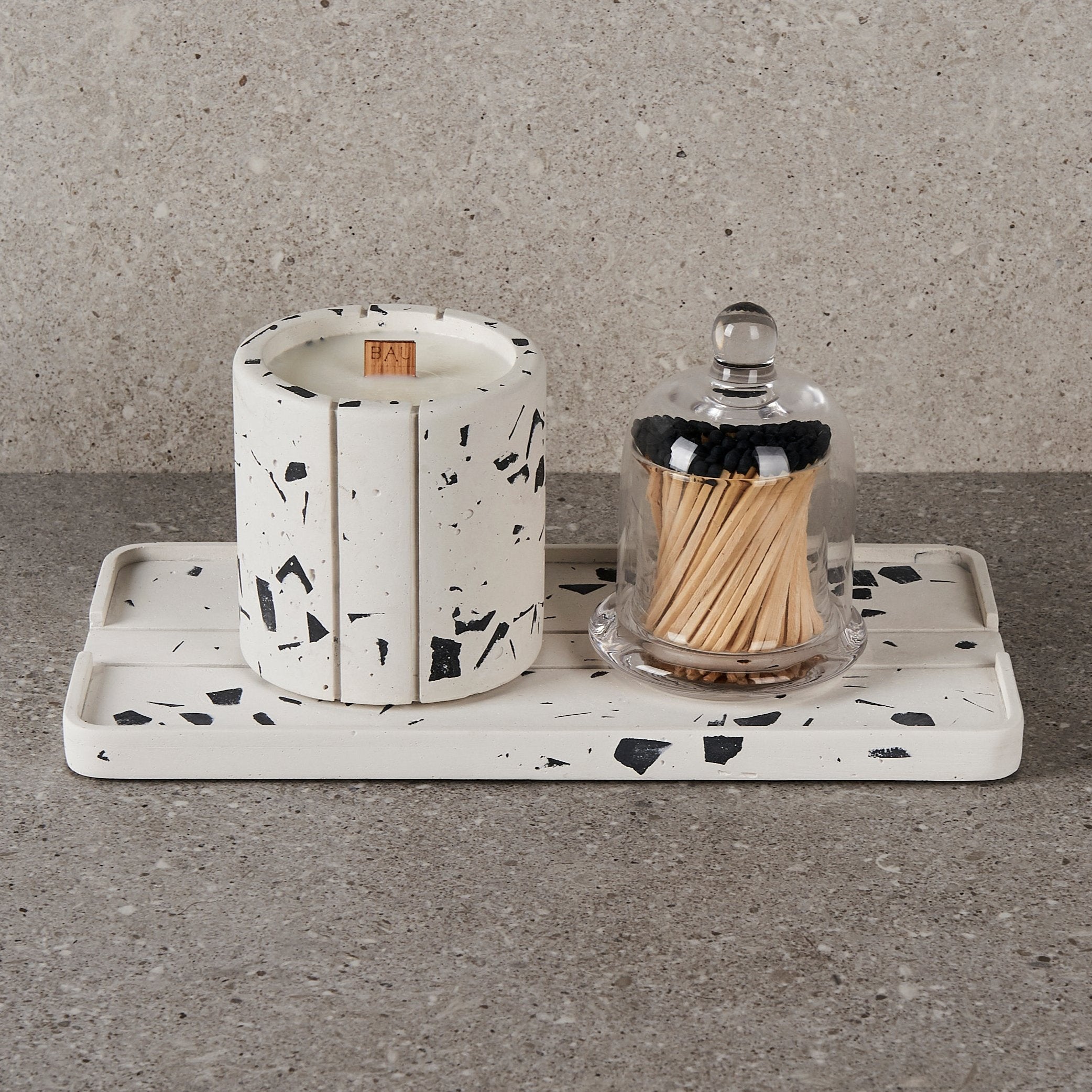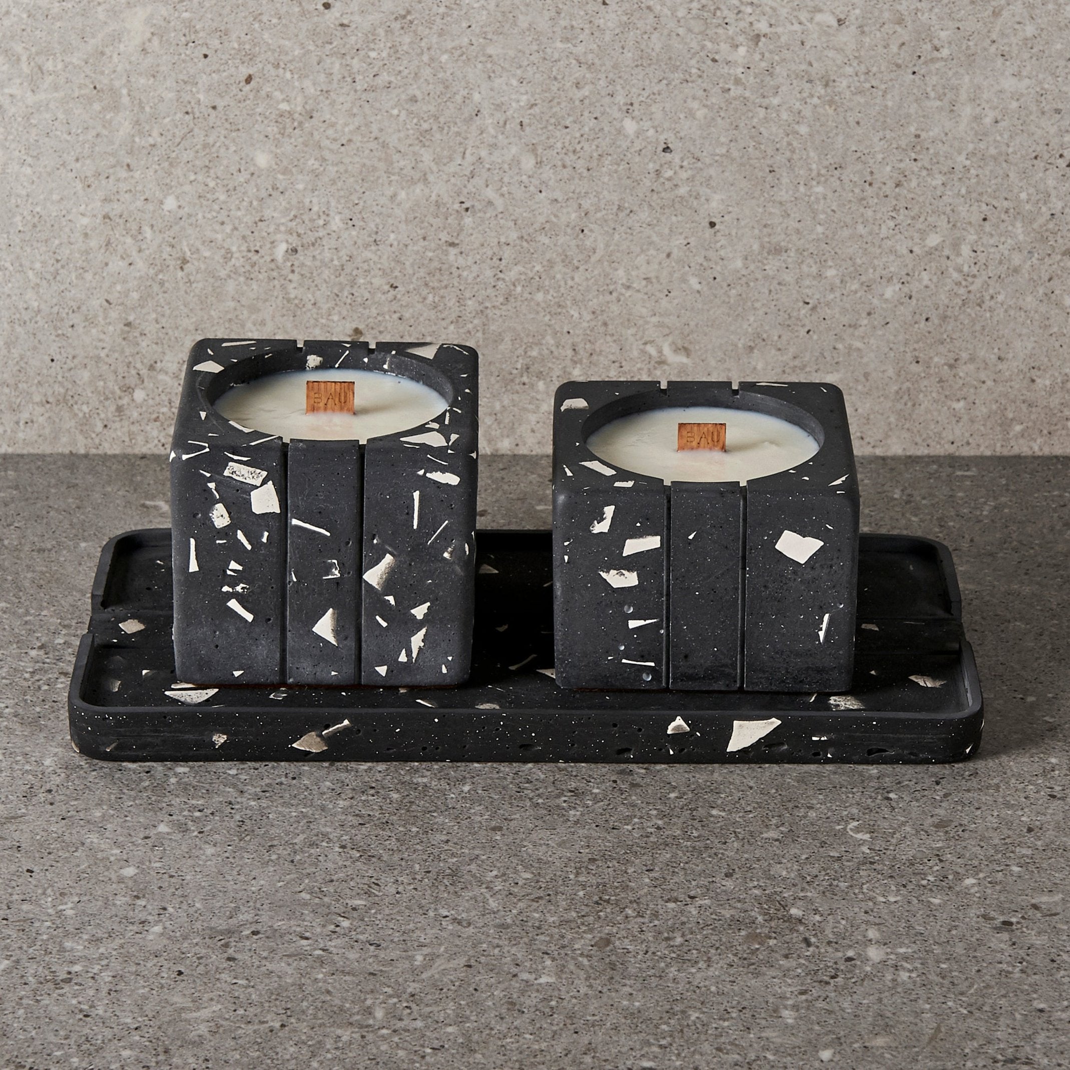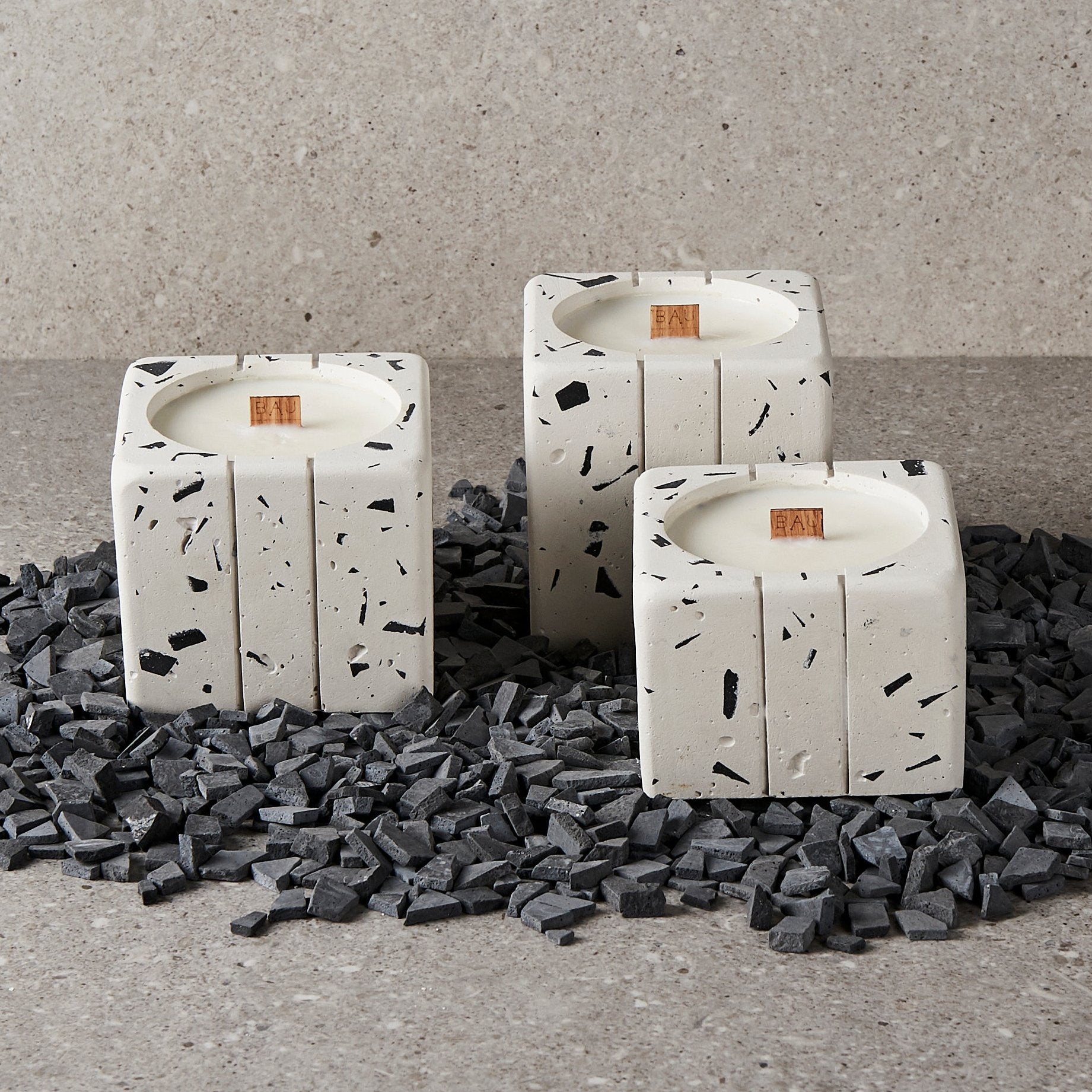 ¡Descubre nuestras velas artesanales, elaboradas con cera de soya y envases de terrazzo, ofreciendo intensos aromas en un recipiente elegante!