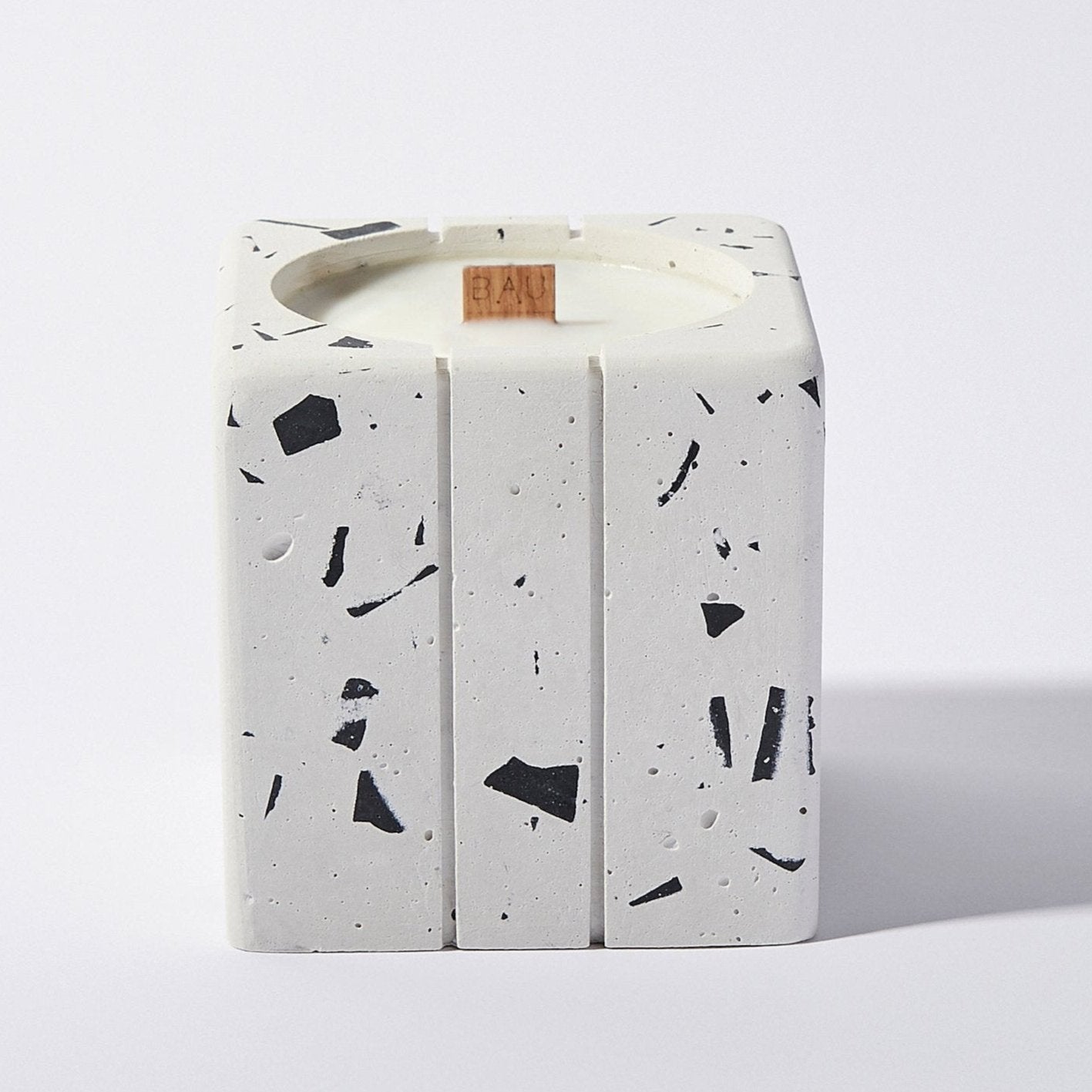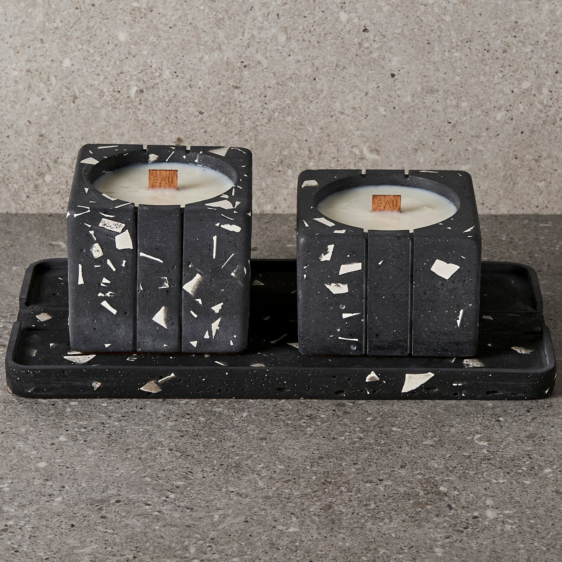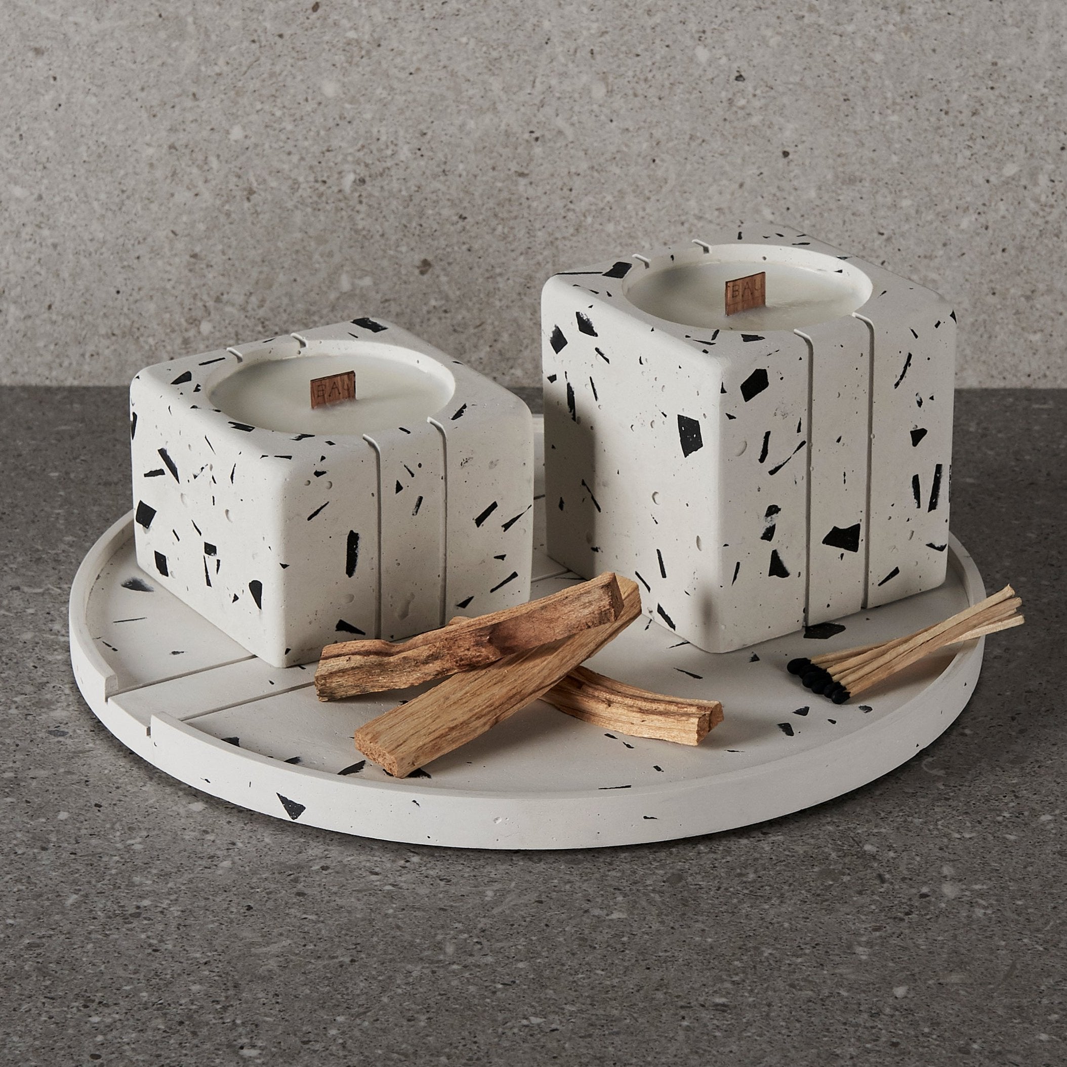 ¡Descubre nuestras velas artesanales, elaboradas con cera de soya y envases de terrazzo, ofreciendo intensos aromas en un recipiente elegante!