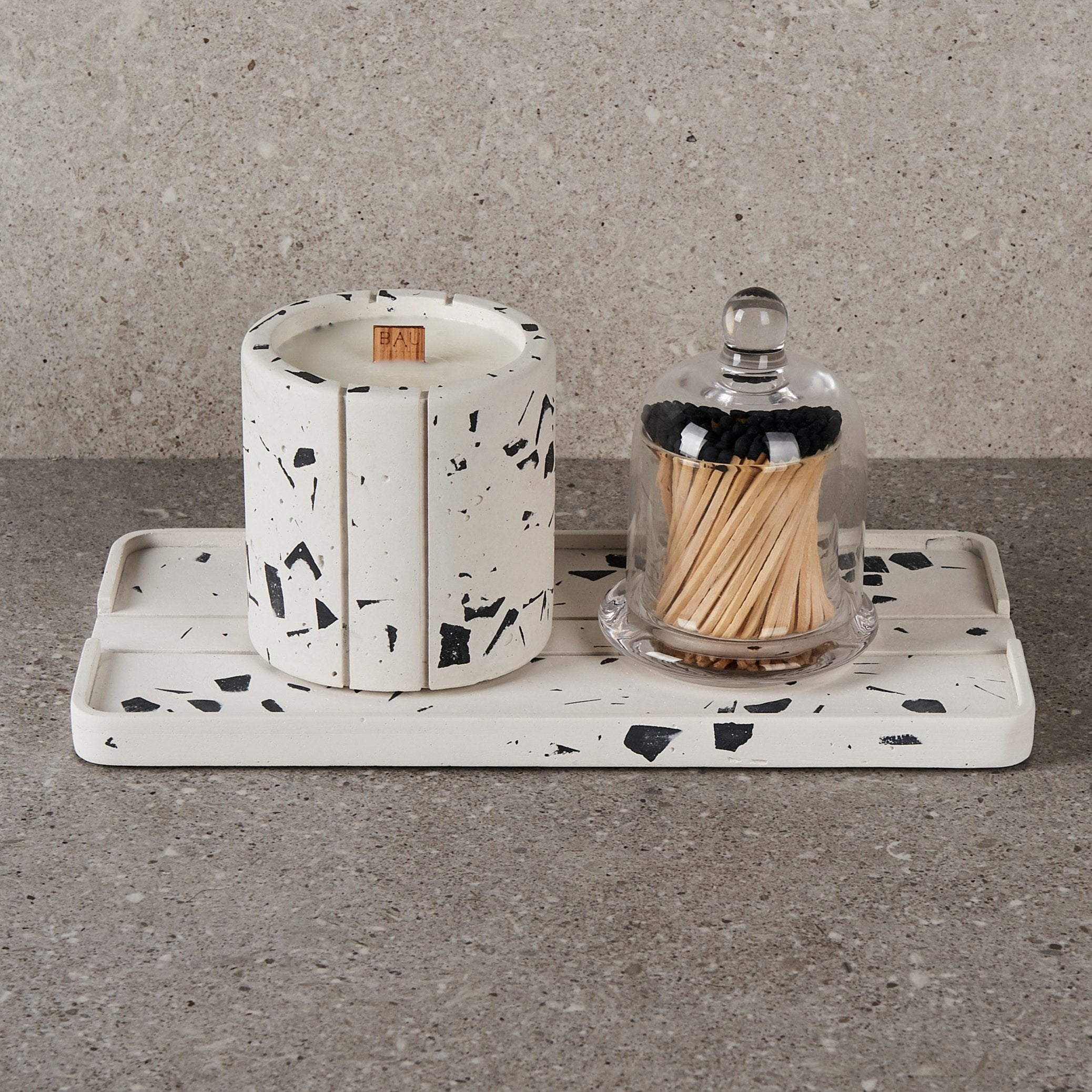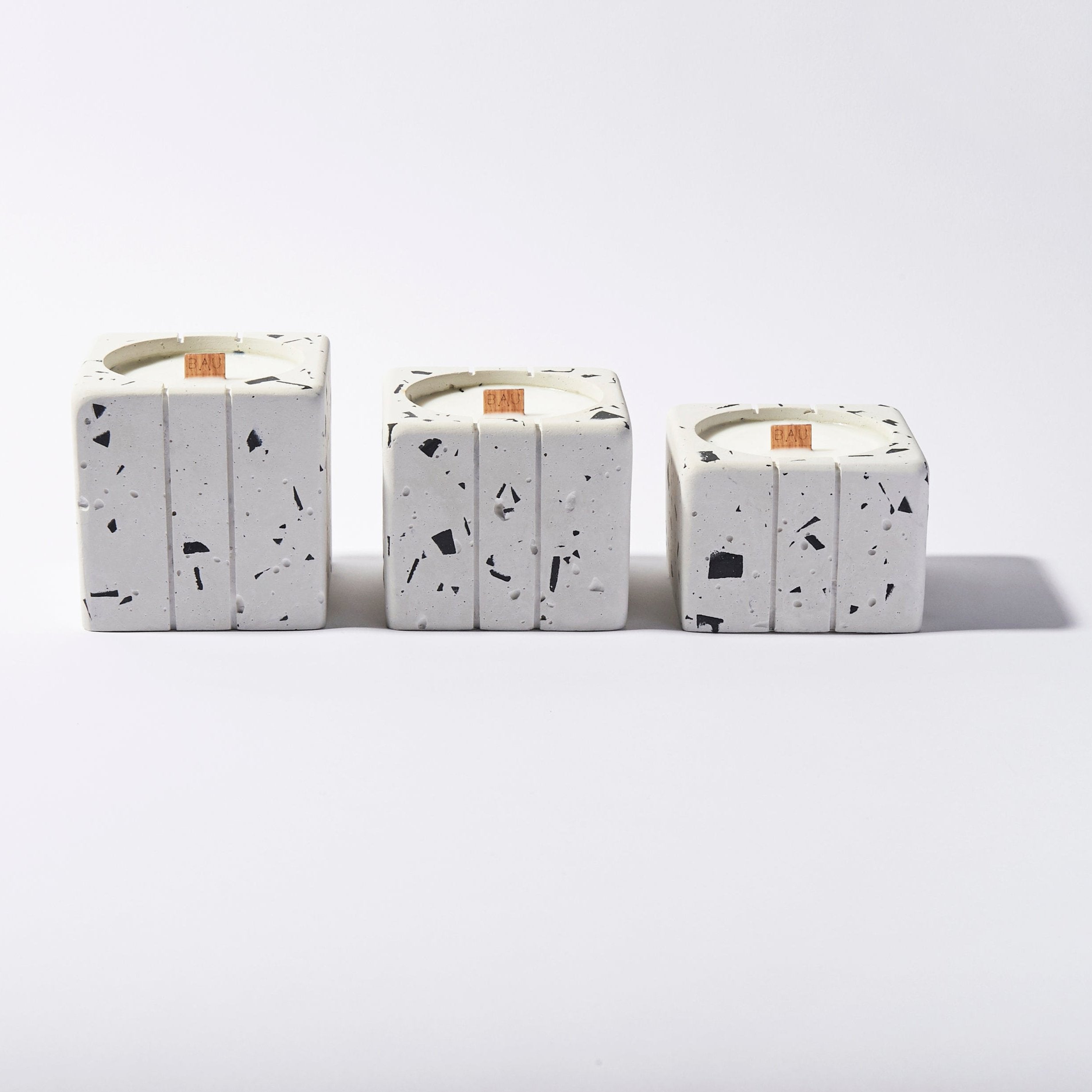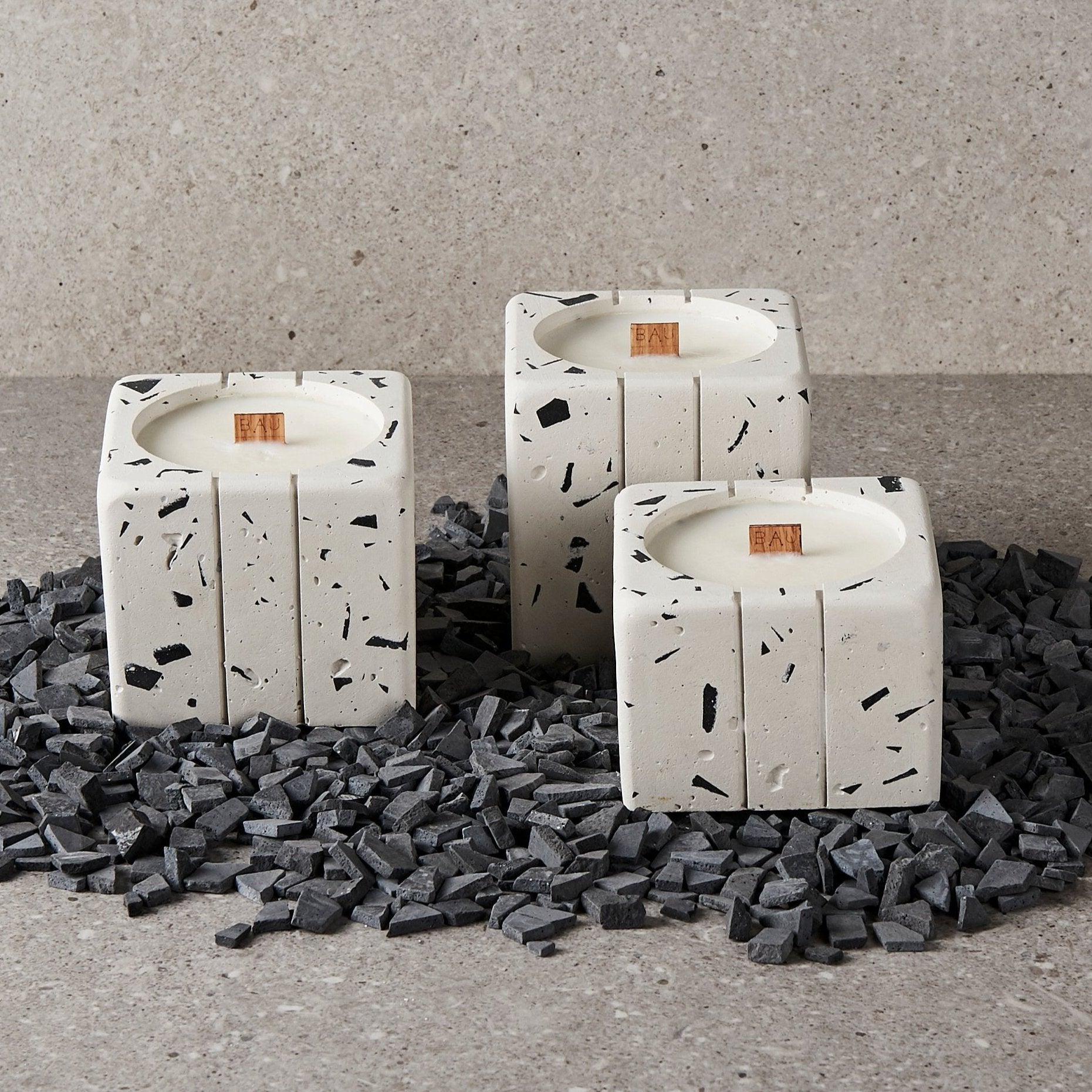 ¡Descubre nuestras velas artesanales, elaboradas con cera de soya y envases de terrazzo, ofreciendo intensos aromas en un recipiente elegante!