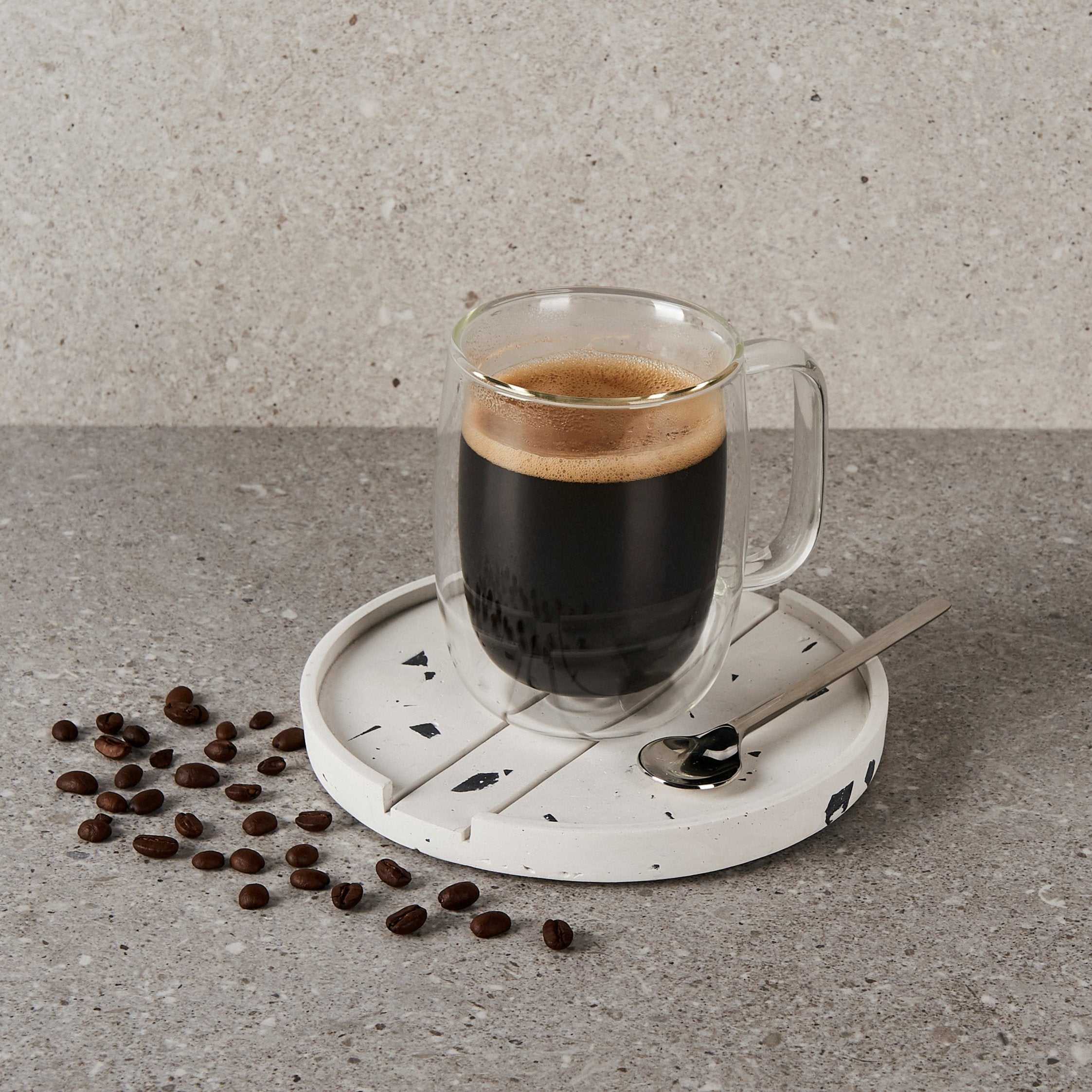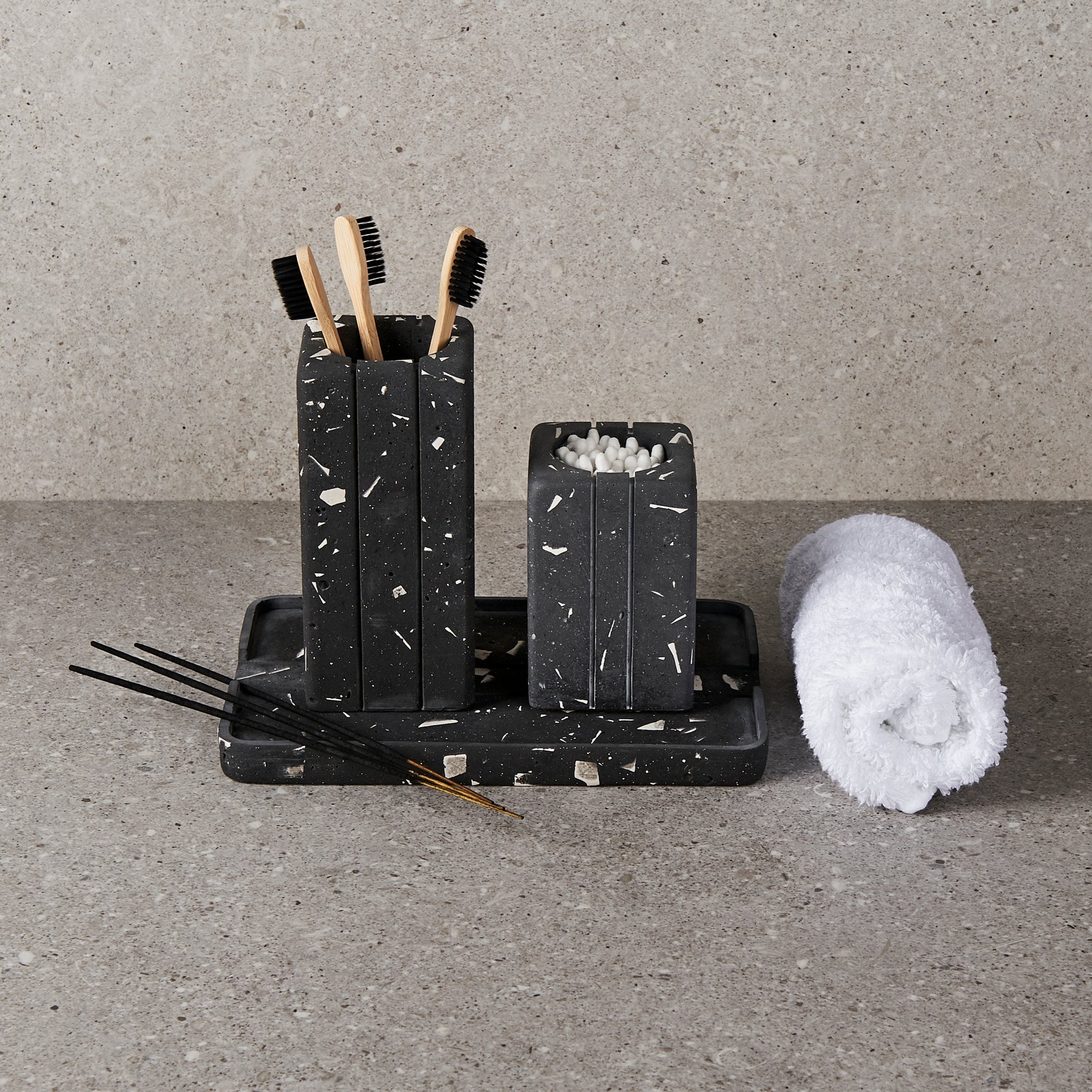 - Cada pieza incorpora fragmentos de mármol natural en su receta.