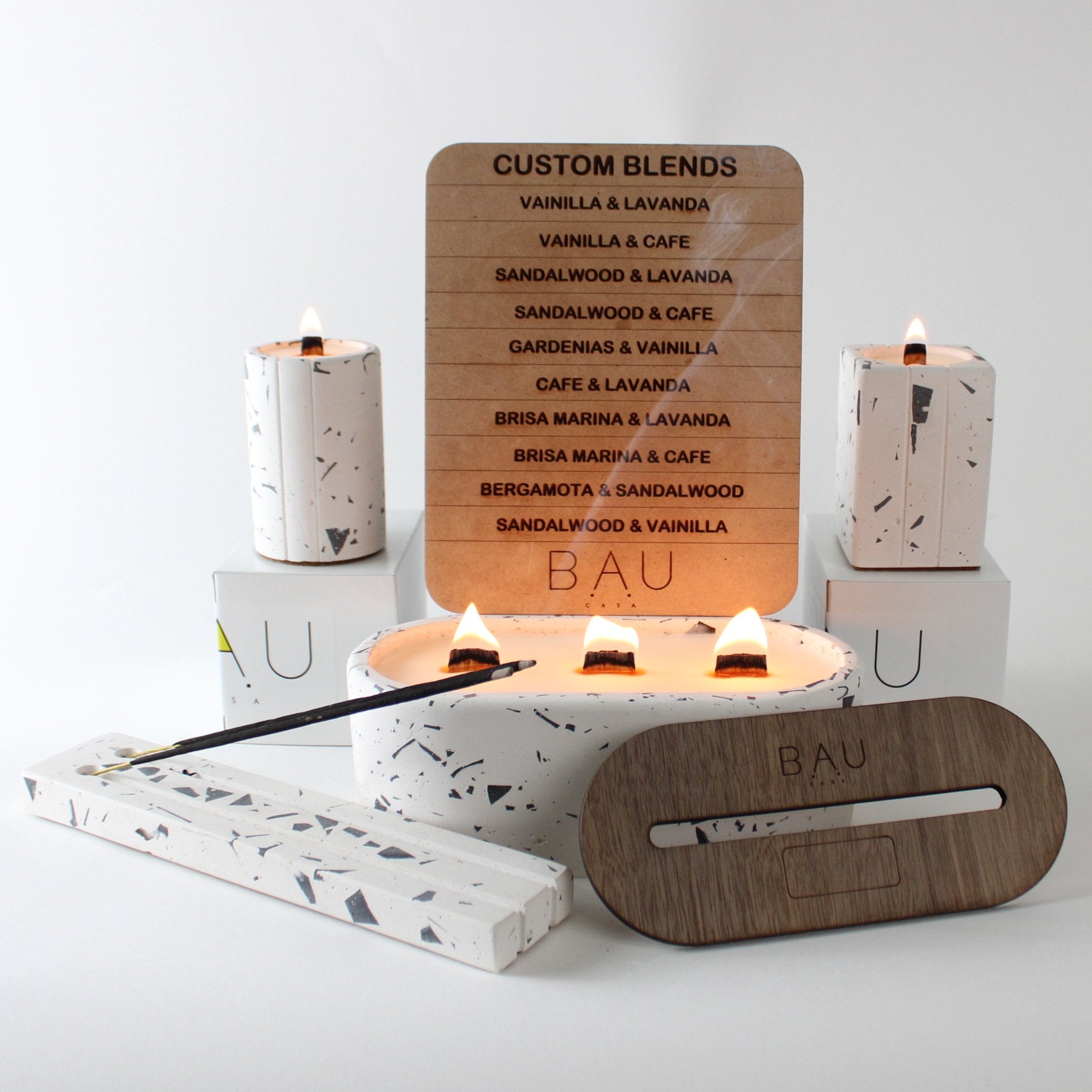 ¡Descubre cómo se crean nuestras velas de terrazo! Cada una es única debido a su método artesanal de fabricación. Primero, preparamos el recipiente con pavilos de madera que emiten un sonido de fogata. Luego, mezclamos fragancia con cera de soya, la vaciamos en el recipiente y dejamos solidificar. Todo se hace con dedicación y cariño en Ciudad de México.